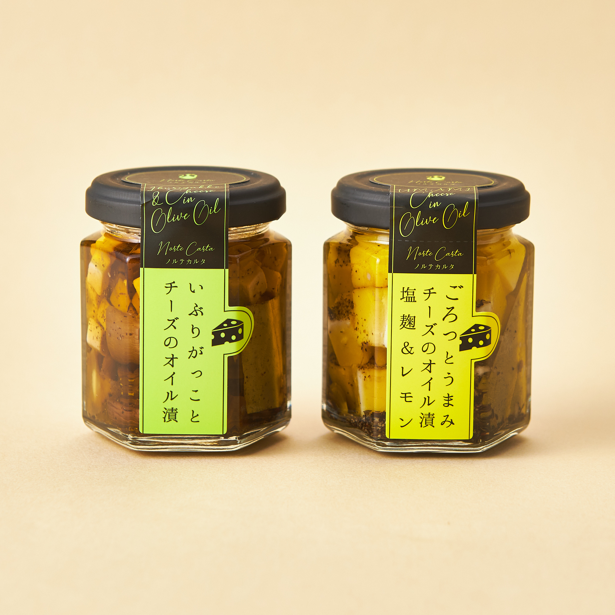 ごろっとうまみ チーズのオイル漬(塩麹&レモン)&しょっつるナッツ2点セット(1,671円)