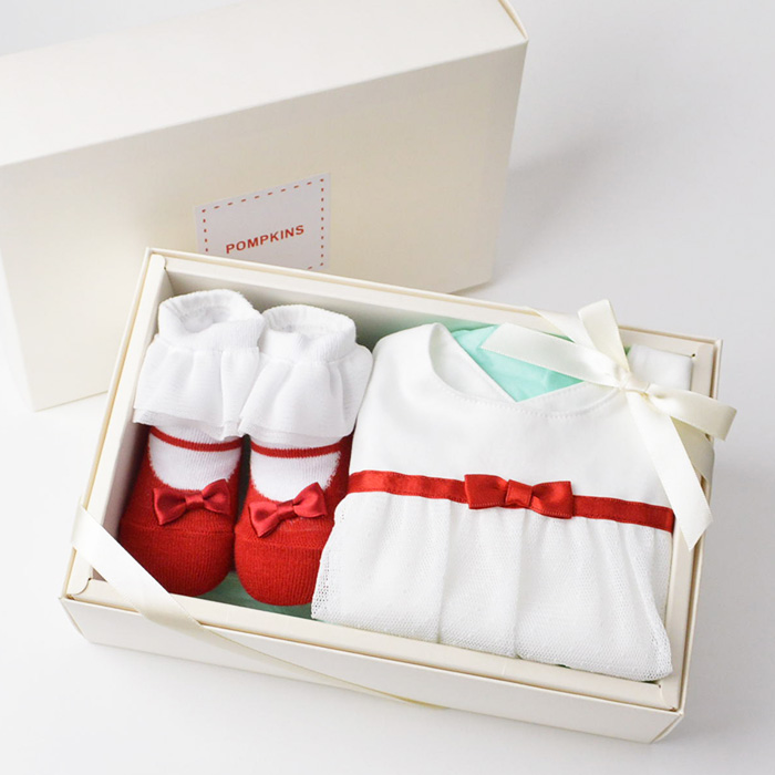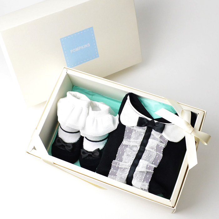 大口注文・法人のお問い合わせはこちらフォーマルなドレスを着たようになれちゃう素敵なスタイ。 段々フリルがゴージャスです。 チュールのバレエシューズ風POP UP SOXが一緒になったギフトセットです。 結婚式やお宮参りにもおすすめです