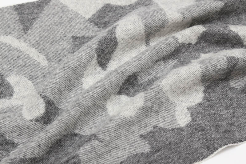 このマフラーはジャカード織機を使用しております。 ジャカード織りを簡単に説明すると、 特殊な機械で複雑な模様柄を表現しマフラーを織る事が出来ます。 普通の織機では、規則的なストライプやチェック柄、ボーダー柄 などしか表現出来ません。 ジャカード織りのマフラーは1枚1枚作るのに 時間と費用がとても掛かるため世界的に生産数が少なく とても貴重な製品となります。