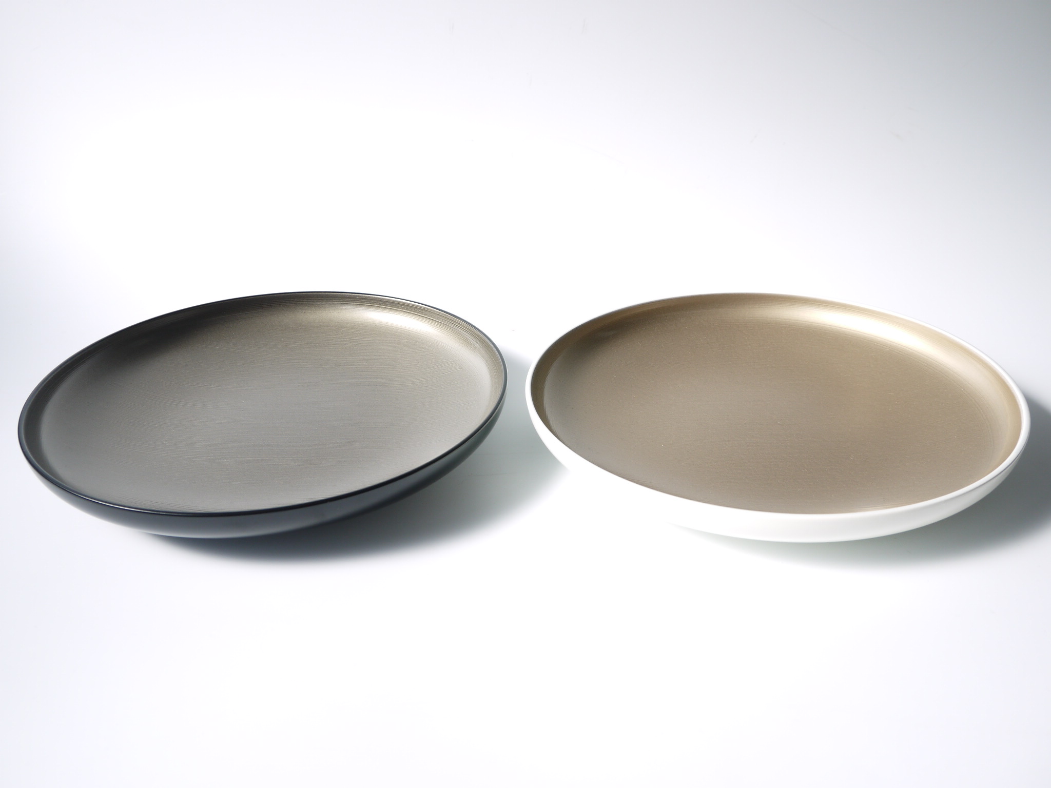 プレートの内側にひとつひとつ刷毛目を手作業で描き、 その上に銀色や金色で塗り重ね仕上げたプレートです。 食器洗浄器に対応しています。
