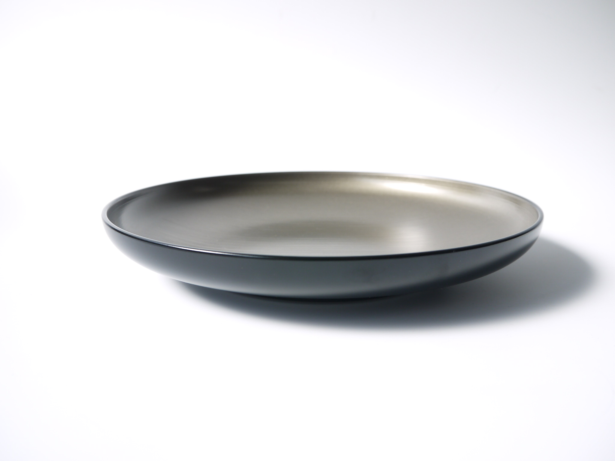 外側は黒で、内側は刷毛目でシックな銀色です。