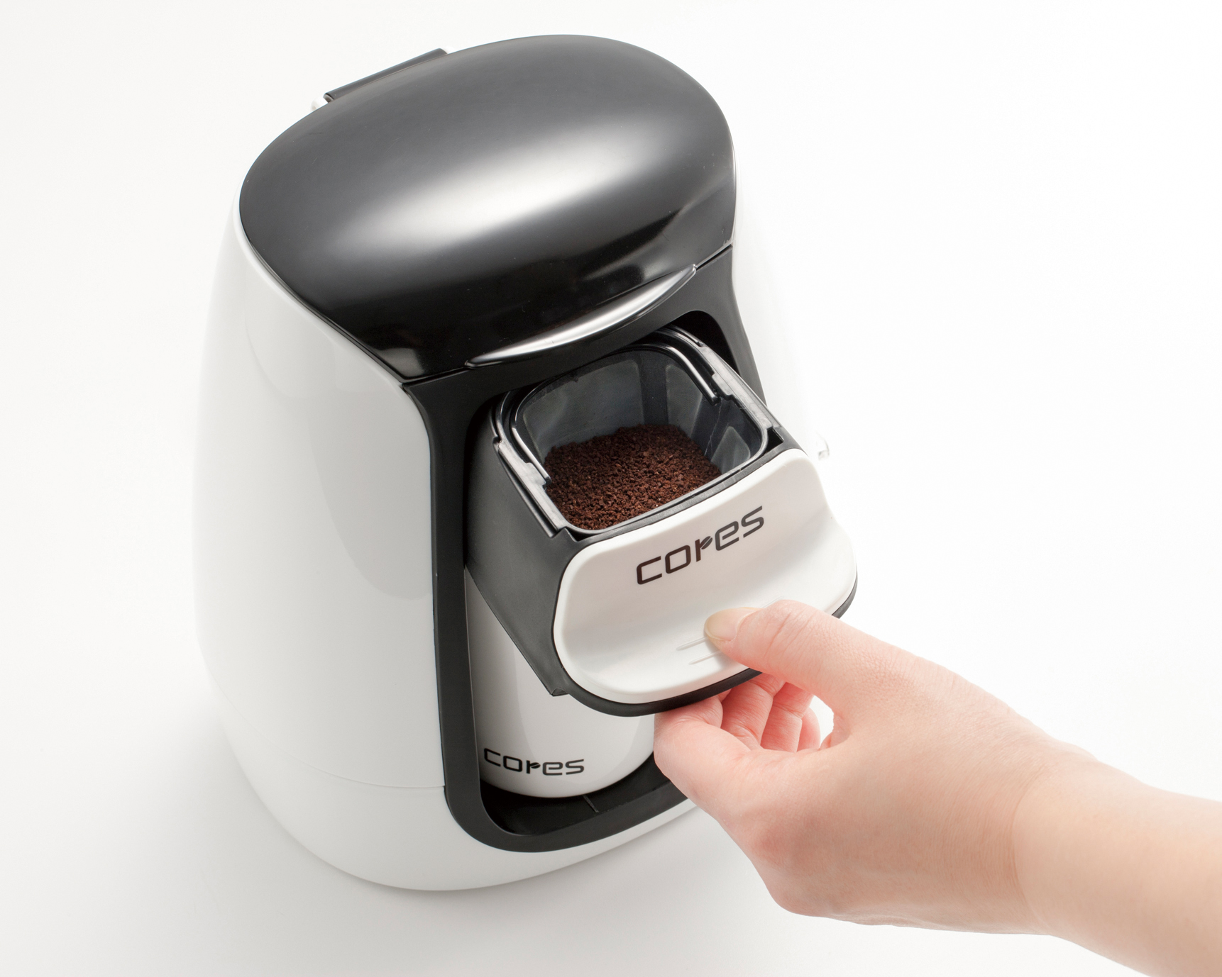 1杯分の粉量は8~10gで中挽きがお勧めです。 コーヒー粉はフィルター内で平らにならしてください。 約4~5分で1杯分のコーヒーが抽出できます。