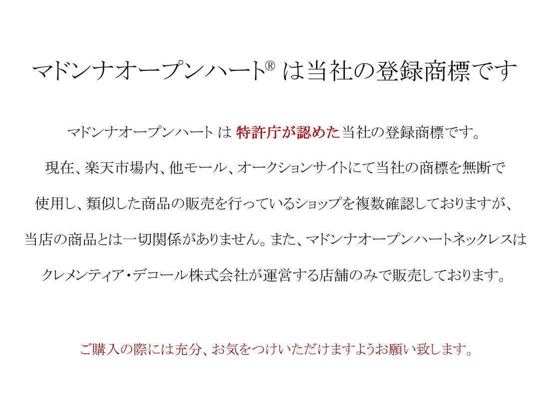 TVや雑誌でも話題の圧倒的な人気を誇るハートモチーフのマドンナオープンハートスワロフスキーネックレスと、ピアスまたはイヤリングのセットです。高級感溢れる上質な作りになっています。スライドアジャスターチェーンでつけたまま長さの調整が可能です。