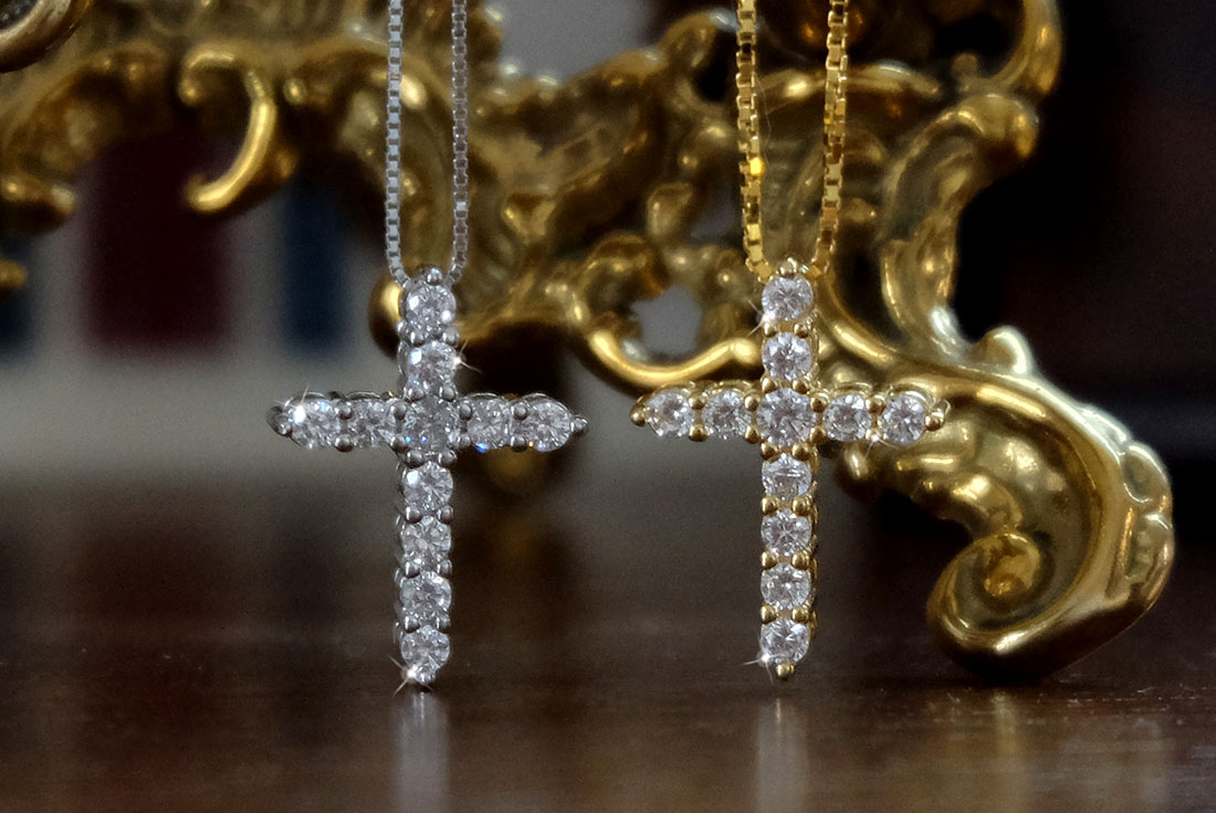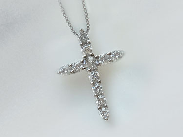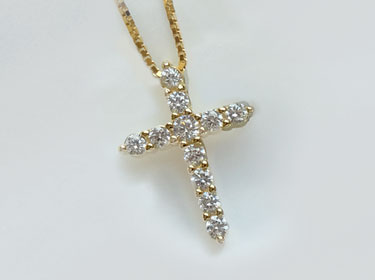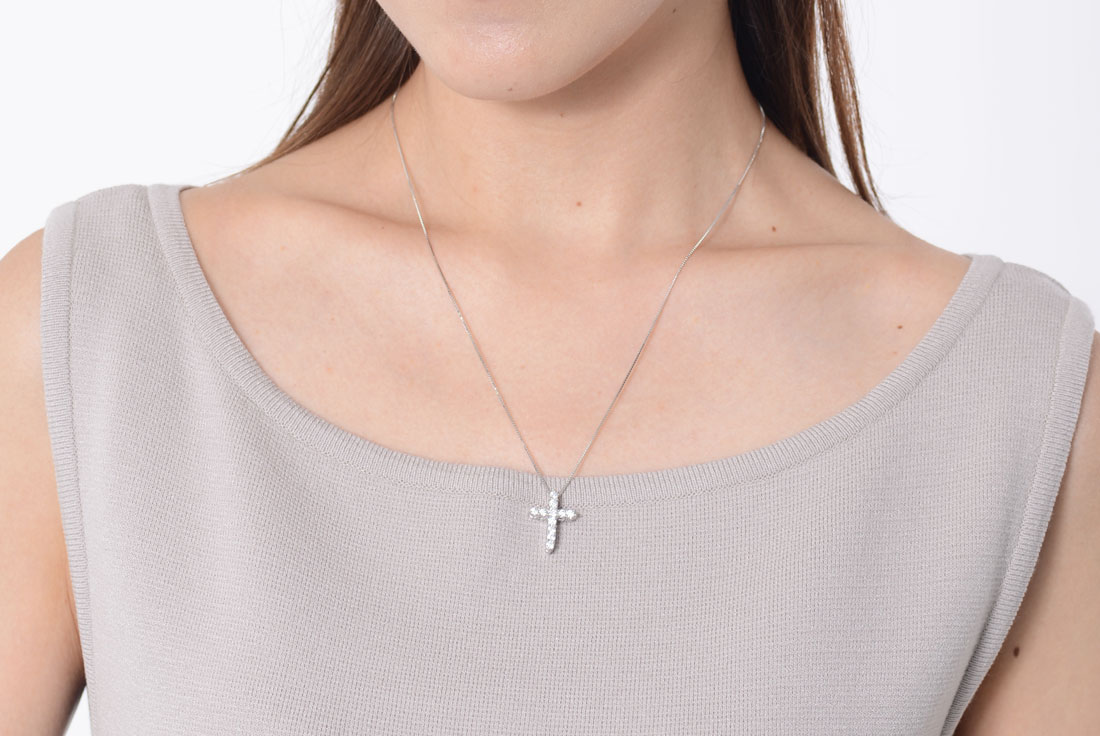 大口注文・法人のお問い合わせはこちらTVでも紹介された人気の【Clementia】のスイートイレブンクロスネックレスです。 シャープなフォルムに女性らしい輝きを添えた、シンプルなクロスモチーフのネックです。 大切な日の贈り物としておすすめです。 契約工房で、熟練の職人が一つ一つ丁寧にセッテイングしています。