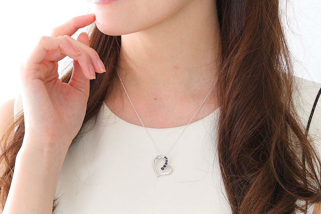 大口注文・法人のお問い合わせはこちらハートの中心に行くほど、段階的に大きさを増していくストーンが印象的な、ブルーサファイアのネックレス。 Tシャツの胸元にぶら下げても、胸元が開いたドレスでも、シンプルでエレガントなネックレスは使い方自由自在。 その無垢な輝きは、どんな装いをも最大限に引き立てる不思議な力を持っています。 契約工房で、熟練の職人が一つ一つ丁寧にセッテイングしています。