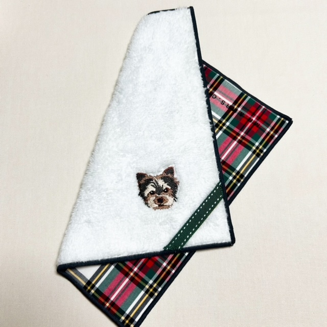 ワンちゃんモチーフが可愛い、マイクロファイバータオルです。ハンカチとしてはもちろん、眼鏡やスマートフォンの画面などの油汚れもきれいにします。愛犬と同じモチーフにすれば、いつでも一緒にいられます。裏側のチェックやストライプの柄もアクセントになって可愛いです。