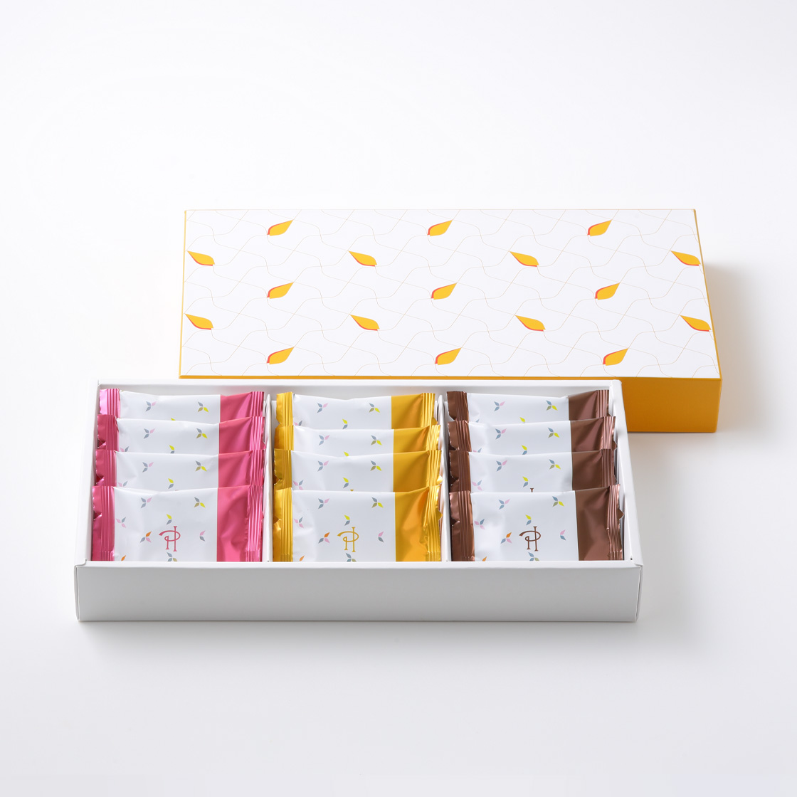 可愛らしい丸形のラング・ド・シャ。定番のミルクチョコレートとビターチョコレート、独創的な「イスパハン」、3種12枚の詰め合わせです。3種の味わいのチョコレートをラングドシャのさくさくとした歯触りとともにお楽しみいただけます。バレンタインやホワイトデーのギフトにも最適です。