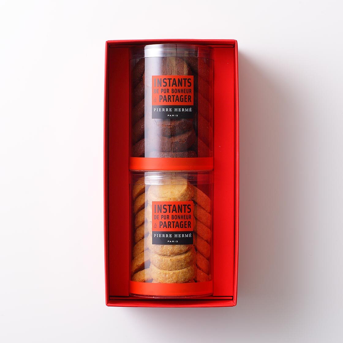 大口注文・法人のお問い合わせはこちらピエール・エルメ・パリ定番人気を誇る「サブレ アンフィニマンショコラ」と「サブレ アンフィニマン ヴァニーユ」の合計2点をオリジナルの赤のギフトボックス小に詰め合わせました。