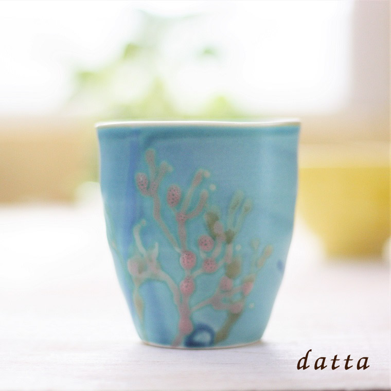 珊瑚のお花は、元気でいてほしいというお守りとして昔から用いられてきました。 そんな珊瑚のお花をあしらった器は、 コーヒーに紅茶、晩酌の器としても重宝します。 丸みを帯びたフォルムは手元にも良くなじみ温かみがあると好評です。
