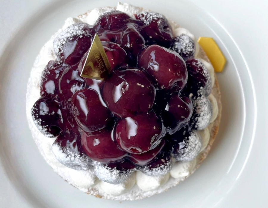 大粒のジューシーなダークチェリーをたっぷりデコレーションしたタルトです。 長崎県平戸産の粗挽き全粒粉小麦をタルト生地に配合し、 小麦の旨みと香ばしさを引き出して、ザクッと焼き上げました。 しっとりアーモンド生地に、濃厚チーズムースクリームと ジューシーな大粒ダークチェリー。 酸味とコクのマリアージュをお楽しみください。 紫壇色に艶めくタルトは、ギフトにも差がつくスイーツです。