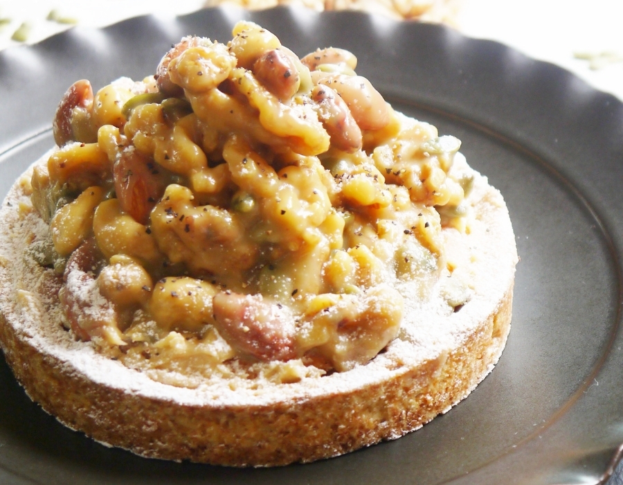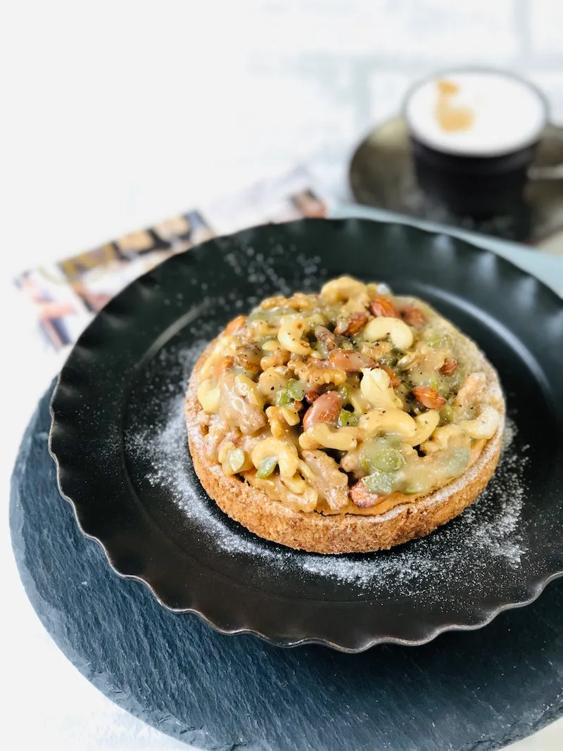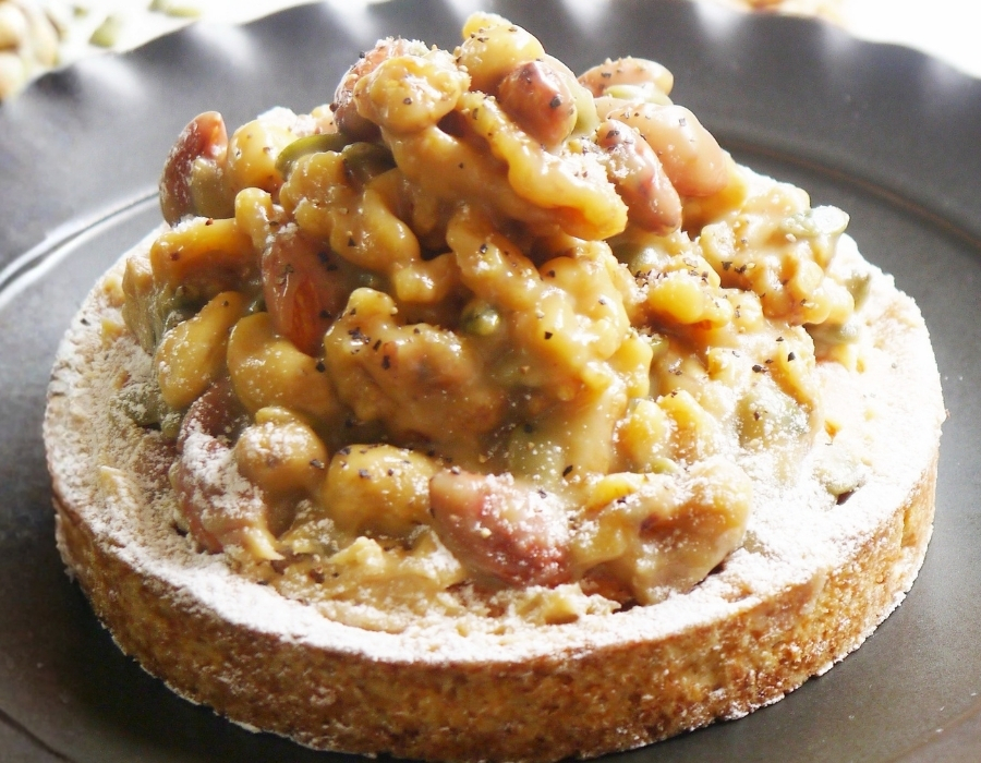 ザクザクタルトに4種のナッツをたっぷり 黒胡椒とお塩がアクセント。ナッツ好きさんのためのタルトです。カラダに優しい保存料着色料無添加の、ギフトにぴったりなスイーツです。できたてを冷凍して、おいしさそのままお届けいたします。