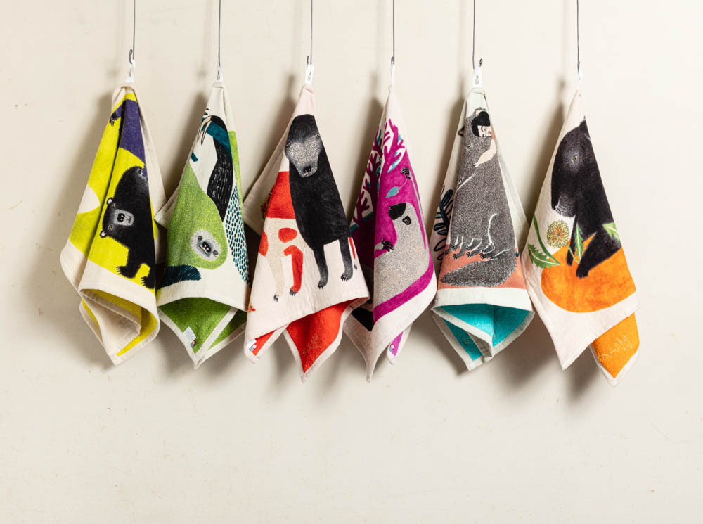 MiWさんのちょっと不思議で あったかな絵がタオルやハンカチに映しだされます。 毎日がもっとオシャレにハッピーに。 しあわせの時間が流れます。