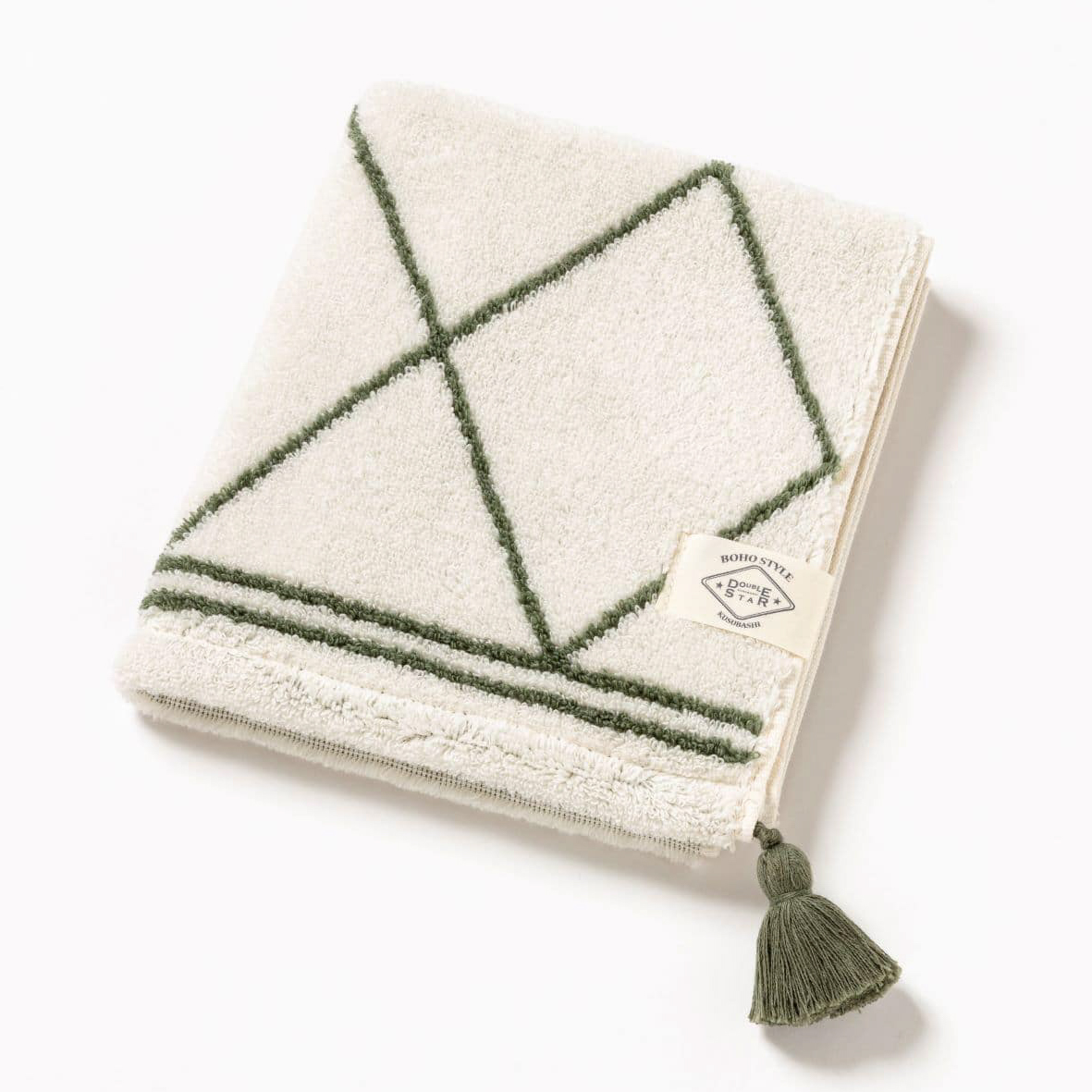 大口注文・法人のお問い合わせはこちらこの度、ボヘミアンな民族調に NYソーホーの都会感覚なテイストを取り入れた 自由で居心地の良いお部屋を演出する BOHO STYLEのタオルが新登場! 自分らしいスタイルを持ち、自信を持って、 くらしを楽しみで満たすことが ちょっとだけ上手な方にぴったりです。 柄にはモロッコのベニワレン地方で 織られたラグにみられる菱形模様を取り入れました。 これは嫁入り道具として使われ、菱形には 「家を守る」といういわれがあると言われています。 バルキー性がありふわりとソフトな肌触りが特徴です。