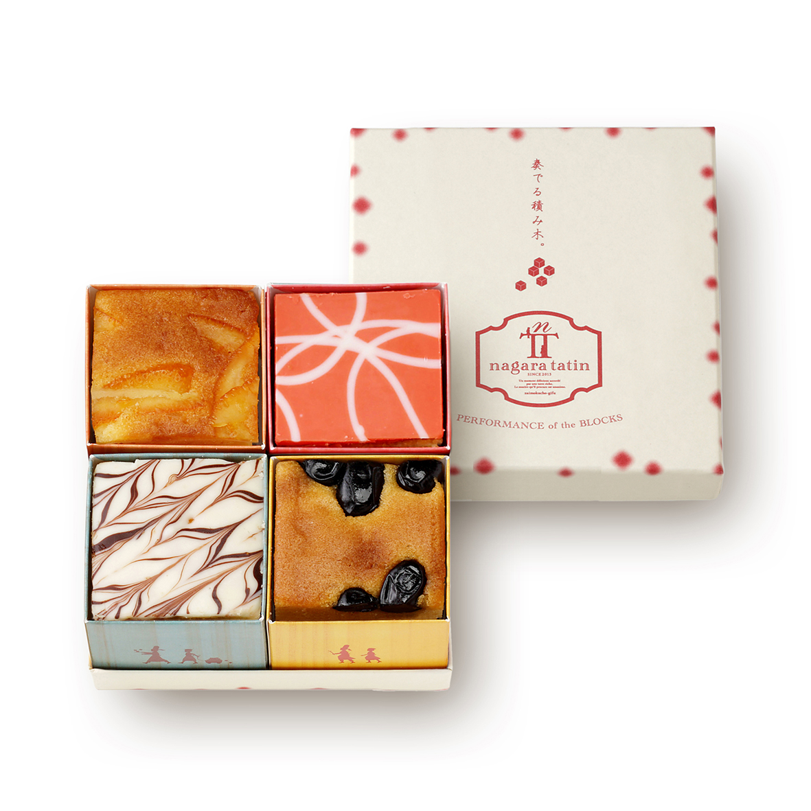 おいしさ長持ちの個包装で、 積み木を思わせる手のひらサイズのボックスに収めました。 お礼の品や、結婚式のプチギフトとしてお配りしたり、 皆が集うシーンにもおすすめです。