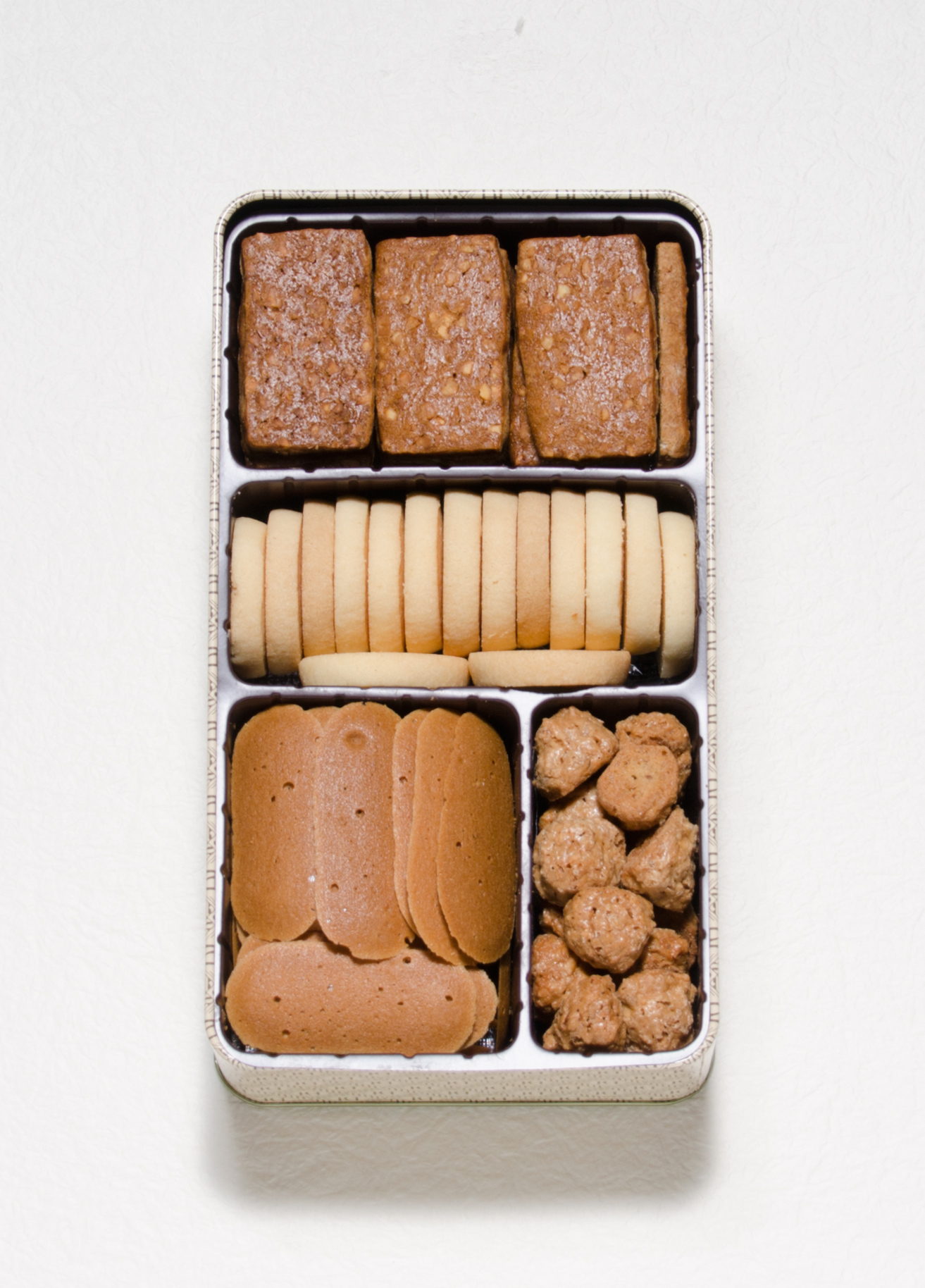 ●ミニコンゴーレ メレンゲにココナッツのすりおろしたものを混ぜて焼いたクッキーです。 ●オスティ 米粉を使用したバニラ風味のクッキーです。 ●ラングドシャー 室温で柔らかくして練ったバターと同量の砂糖を合わせ、それに小麦粉、卵白、バニラエッセンスを加えて生地を作り、軽く、口の中で溶けるような食感が特徴のクッキーです。 ●アマンディーヌ 粉末アーモンド風味のタルト。