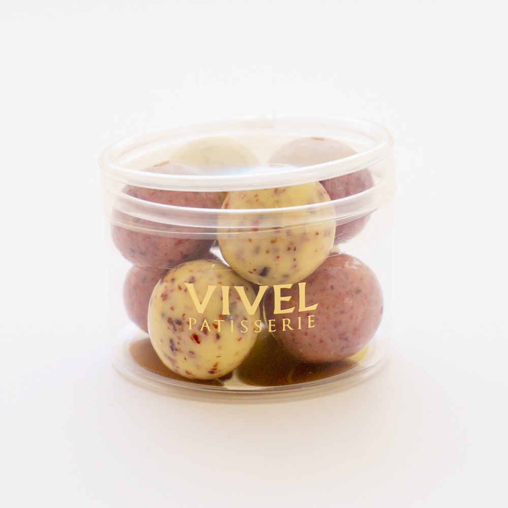 ストロベリージャムをベルギー産のホワイトチョコレートでコーティングしました。王族の結婚式やパーティーにも頻繁に使用されている【VIVEL PATISSERIE】の商品は喜ばれること間違いなしです。日頃の感謝を込めてチョコレートの贈り物はいかがですか?