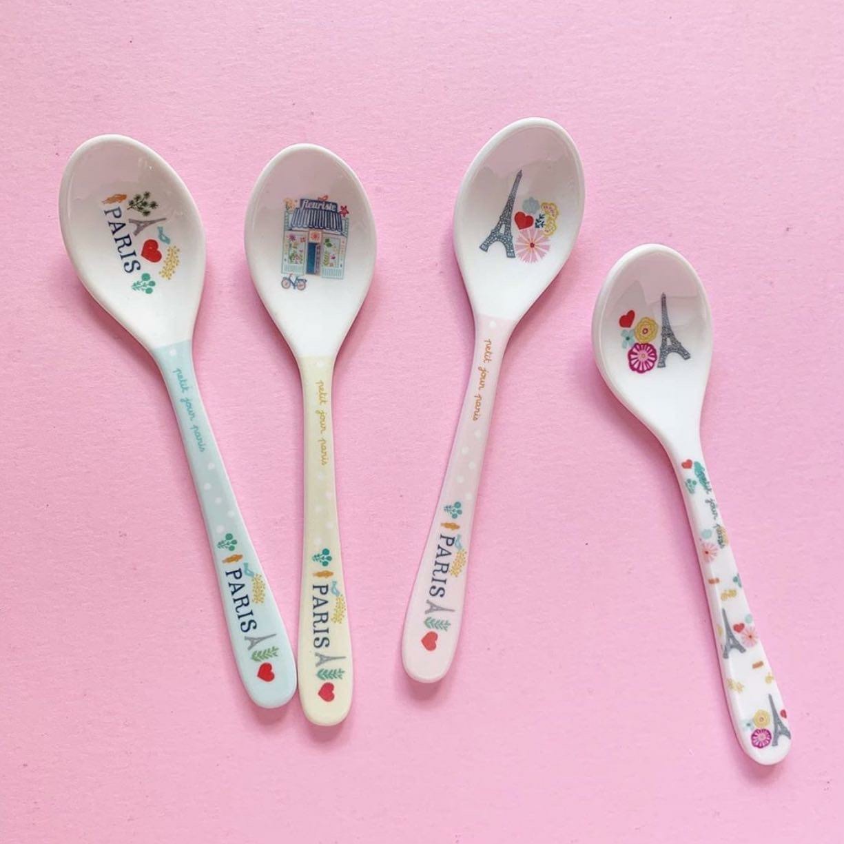 大口注文・法人のお問い合わせはこちら陶器のような高品質メラミン食器です。とっても口当たりがよく滑らかで、このスプーンばかり使ってしまうというお声をよくいただきます。 特殊なコーティング加工によりキズがつきにくく、イラストの美しい発色とツヤ感が長期間続くのが特徴です。 花とパリの風景をモチーフに、優しい色とタッチで描かれたデザインで、プレートやマグとの相性も良く、ティースプーンとしてお使いいただけば、来客時のおもてなしなど、優雅なティータイムを演出してくれます。 幅広い年齢層に人気のKlin d’Oeil(パリのアトリエ)コレクションは、プレゼントとしてもオススメです。