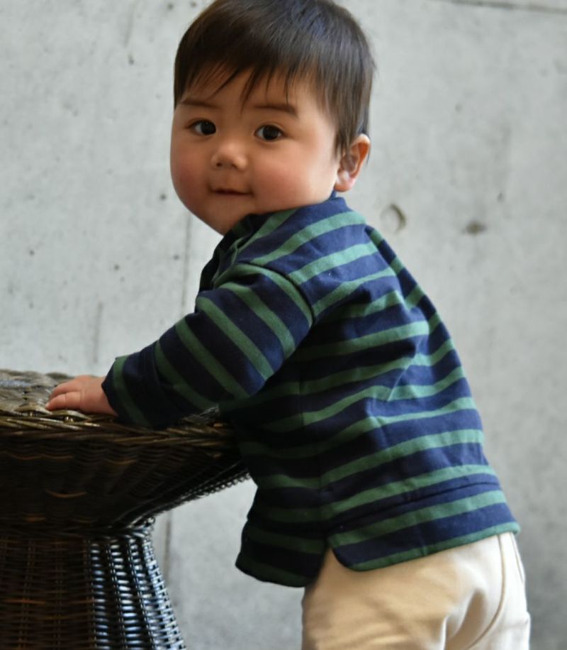 大口注文・法人のお問い合わせはこちらお出かけをさらに楽しくするリンクコーデ。 バスクシャツにベビー&キッズサイズが登場。 大人サイズを子供サイズに縮小し、 ママとのリンクコーデを楽しめるミニアイテムができました。 流行りに左右されないボーダーに、 カラーテープとダブルになった丸みのある裾も、ママとのお揃い感を高めます。