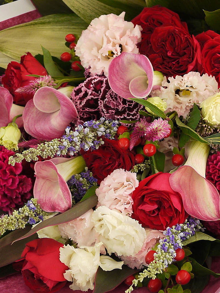 情熱的で華やかな赤と調和と安心感をもたらすピンクの組み合わせ。