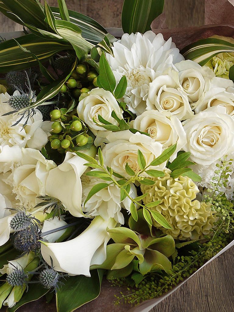 ストレスから解放され、穏やかな安らぎを感じる白・グリーンの組み合わせ。清楚で上品なあの人へ。