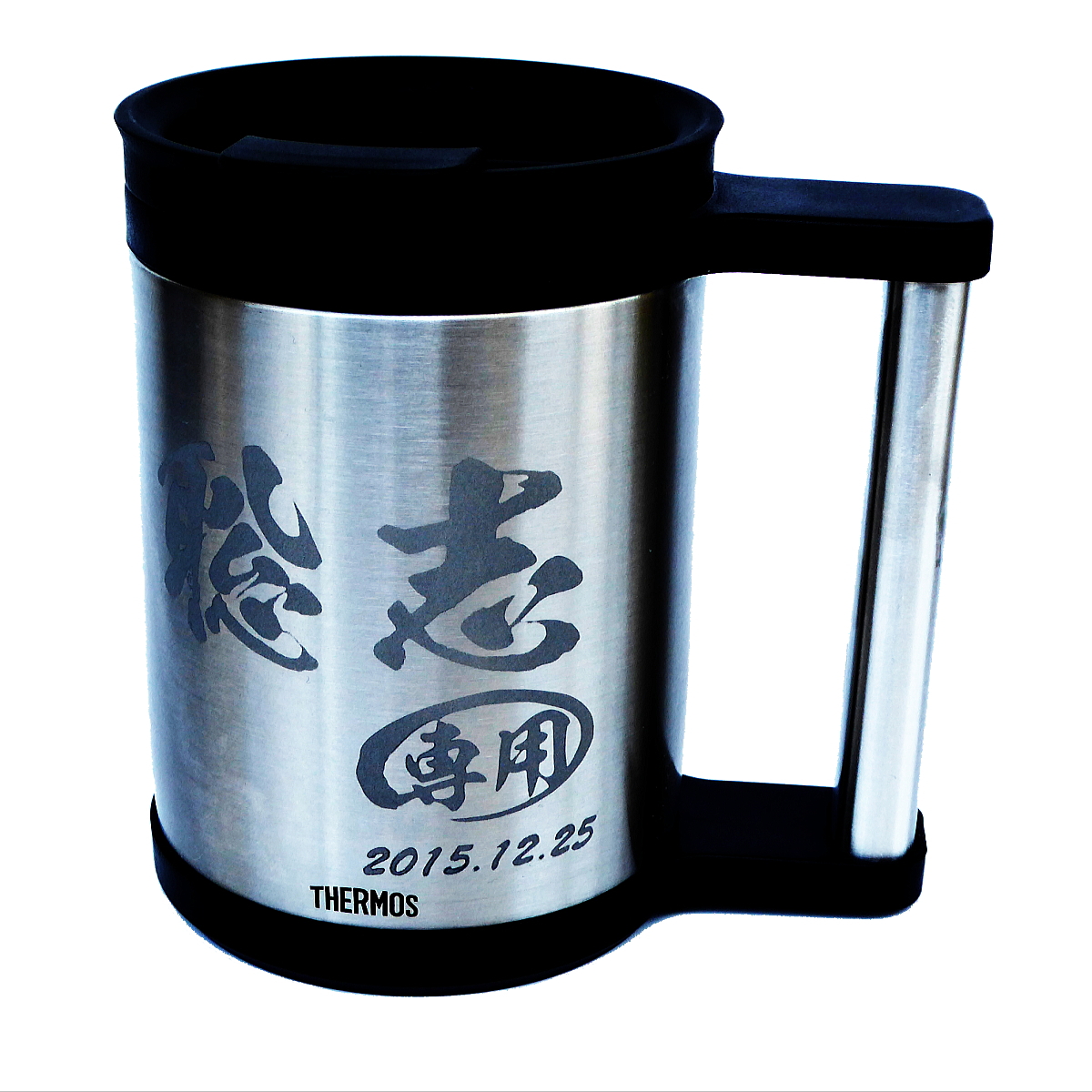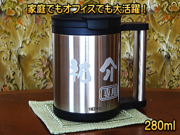 ハンドメイド名入れマグカップ。真空断熱ステンレス二重構造で、おいしさを長持ち。平らなグリップで持ちやすい仕様となっています。当店独自のステンレス仕上げ製法で美しい仕上がりに!ハンドメイドで心を込めて名入れも行っております。