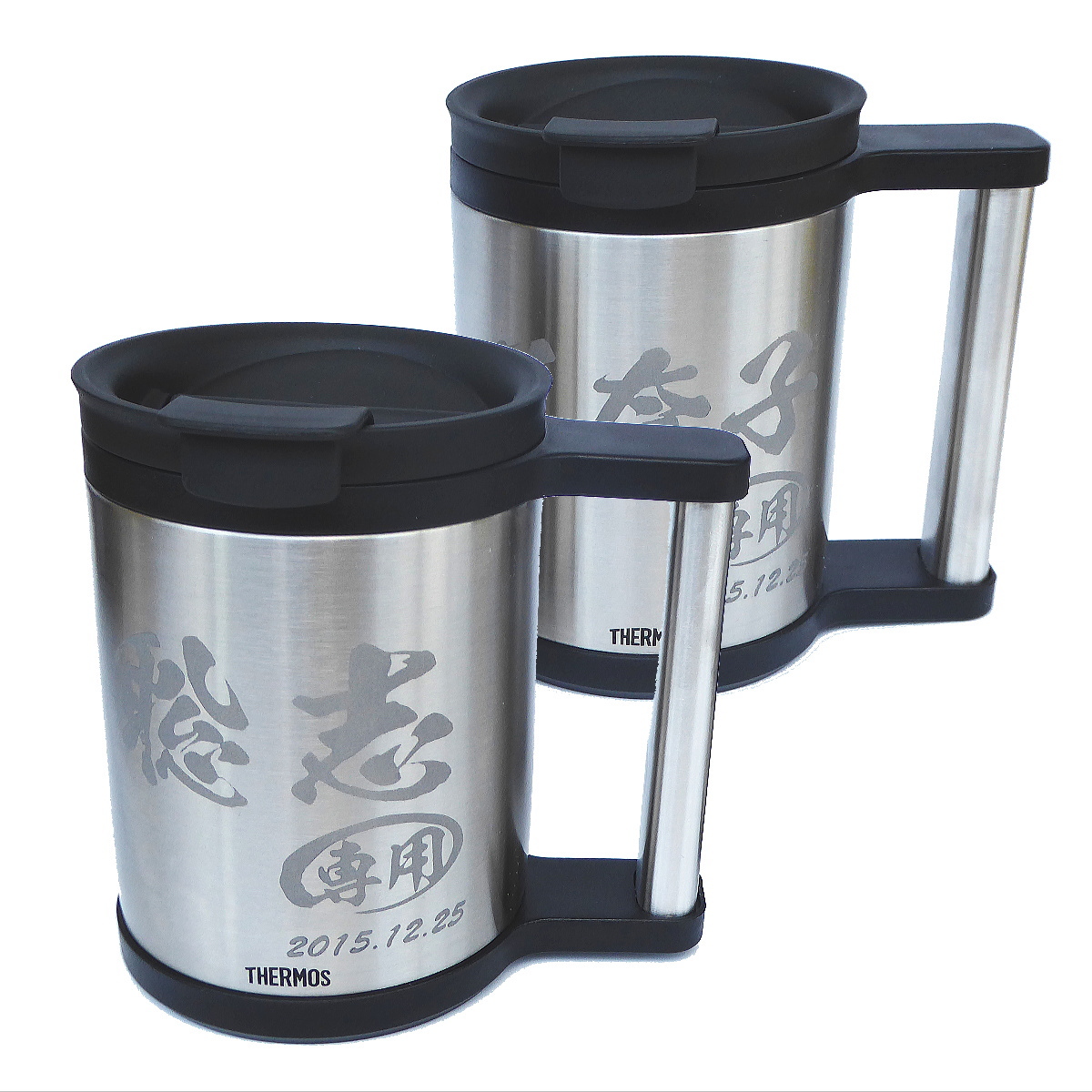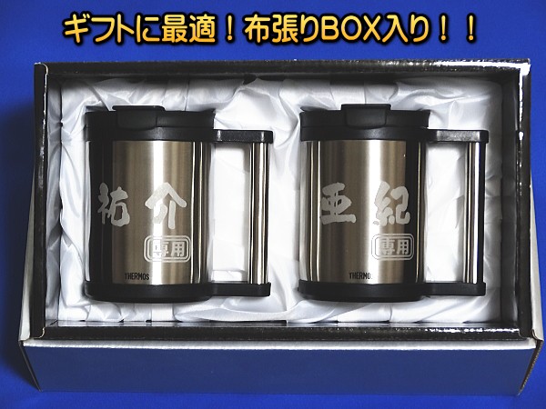 ハンドメイド名入れができる、サーモスオフィスペアマグカップです。真空断熱ステンレス二重構造でおいしさが長持ち。独自のステンレス仕上げ製法で美しい仕上がりです。心を込めて名前を彫刻します。大切な人に、世界に一つのギフトを贈ってみませんか?