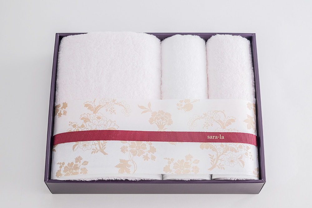 「sara-la」はありがとうを形にする今治タオルです。 高級今治タオルならではの高い品質と使いやすさを備えており、様々なシチュエーションでの贈り物におすすめ。 「今治タオルブランドネーム」と、大切に作られた証である「sara-laシリアルナンバー」を添えてお届けします。