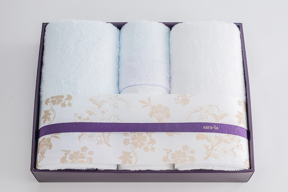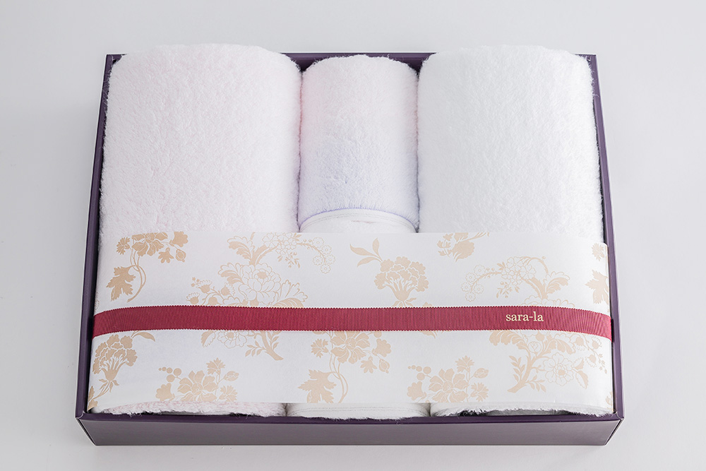 「sara-la」はありがとうを形にする今治タオルです。 高級今治タオルならではの高い品質と使いやすさを備えており、様々なシチュエーションでの贈り物におすすめ。 「今治タオルブランドネーム」と、大切に作られた証である「sara-laシリアルナンバー」を添えてお届けします。