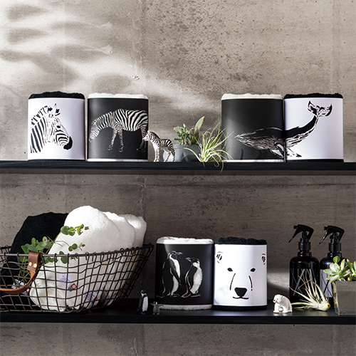 Black&White(ブラック&ホワイト)の、 シンプルで使いやすい洗練されたコレクションのZoo(ズー)シリーズです。 今治タオルには、愛嬌ある動物柄をレーザーカットした紙帯を巻いて、遊び心をプラス。 レーザーカットされたシルエットから、タオル地がのぞき見えます。 箱を開けた瞬間に笑みがこぼれる、スタイリッシュなギフトセットです。