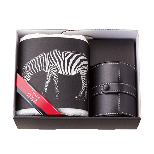 B&Wの、シンプルで使いやすい洗練されたコレクションのZooシリーズです。今治タオルには、愛嬌ある動物柄をレーザーカットした紙帯を巻いて、遊び心をプラス。ネクタイケースは、大切なネクタイを出張や旅行先でもきちんと保管できます。