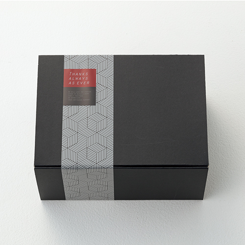 マットな黒のBOXにモダンなデザイン帯がついたパッケージにてお届けします。 ※こちらの商品は、のし・ラッピング(包装紙)は対応いたしておりません。
