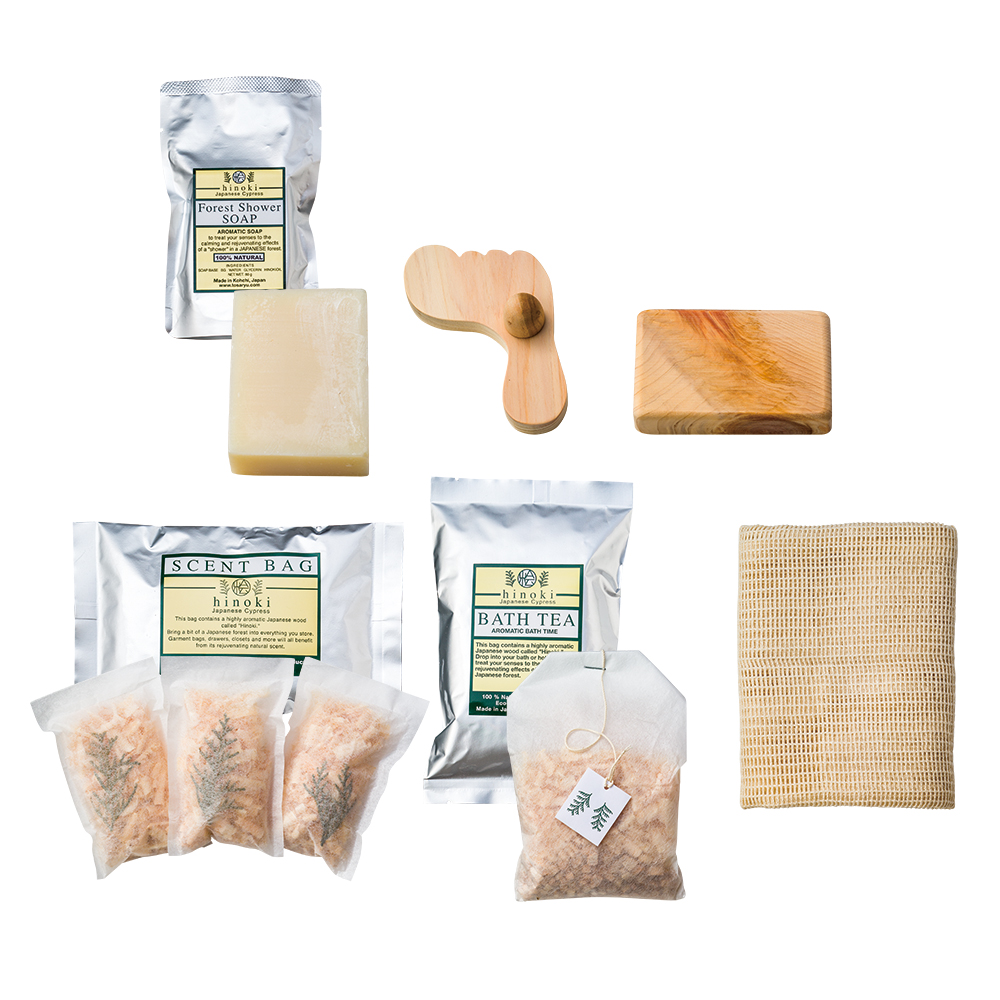 | 生産地 | ・バスティー・セントバッグ・アロマブロック・ツボ押し:高知・四万十桧 ・石鹸:日本 ・タオル:愛媛・今治 |