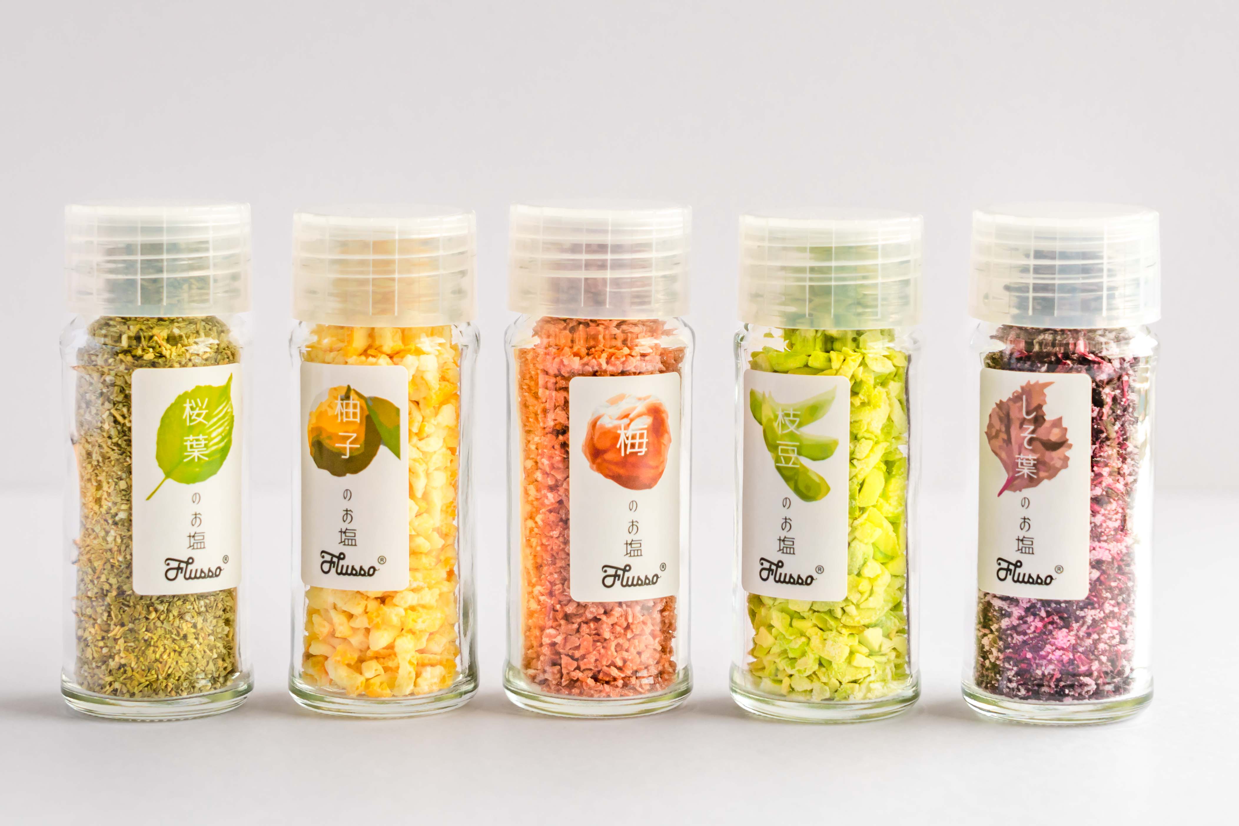 | 重さ | 桜葉のお塩:22g 柚子のお塩:7g しそ葉のお塩:15g 梅のお塩:22g 枝豆のお塩:10g |