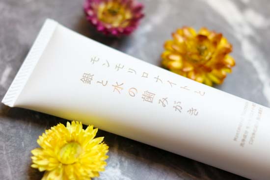 モンモリロナイトに制菌効果のある銀と水を加えたペースト状の歯みがきで、発泡剤や香料、甘味料は入っていません。 モンモリロナイトの自然な吸着力によって食べかすや歯垢などの汚れをくるみ取り、ツルツルにみがきあげて⾍⻭を防ぎます。