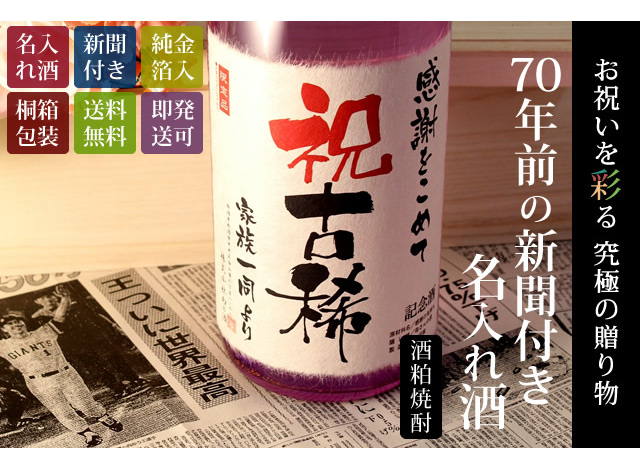初めておじいちゃんになった日、お父さんが過ごしたあの頃の思い出。 お母さんと出会い、過ごした日々。 いつかの人生のあの瞬間。 お父さんが生まれた日は何があった? 私が生まれた日は? そんな会話が聞こえてきそうな“メモリアル新聞”を添えて、 オンリーワンのお酒とともに最高の演出をいたします。