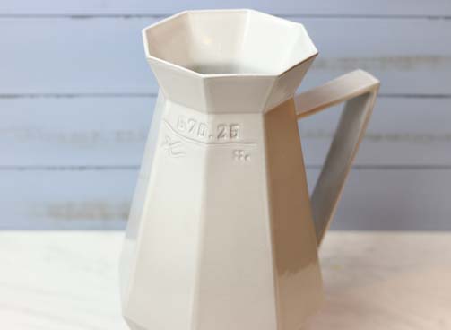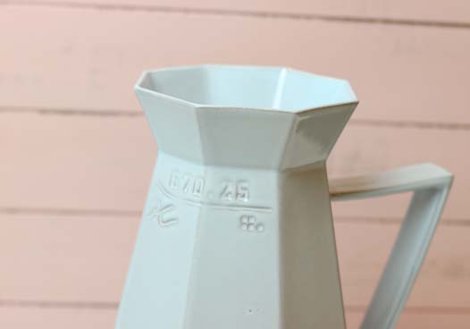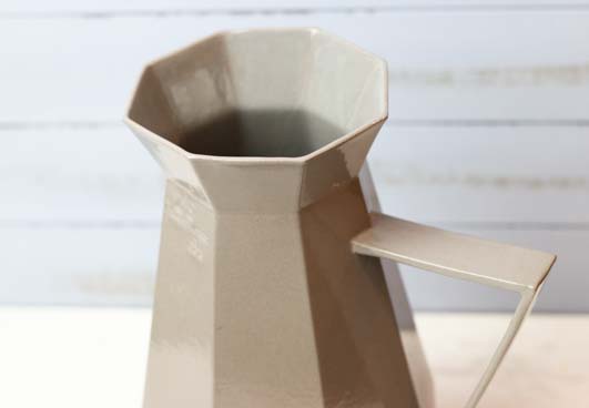 直線のシャープさと、陶器のやわらかさを併せ持った独特の質感が特徴のポットです。