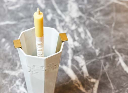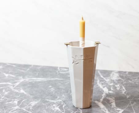 スマートな形が特徴の、信楽焼きのキャンドルスタンドです。滋賀の職人の手によってひとつひとつ丁寧に作られています。薄くて軽いデザインが実現できるのは、信楽の土ならではです。