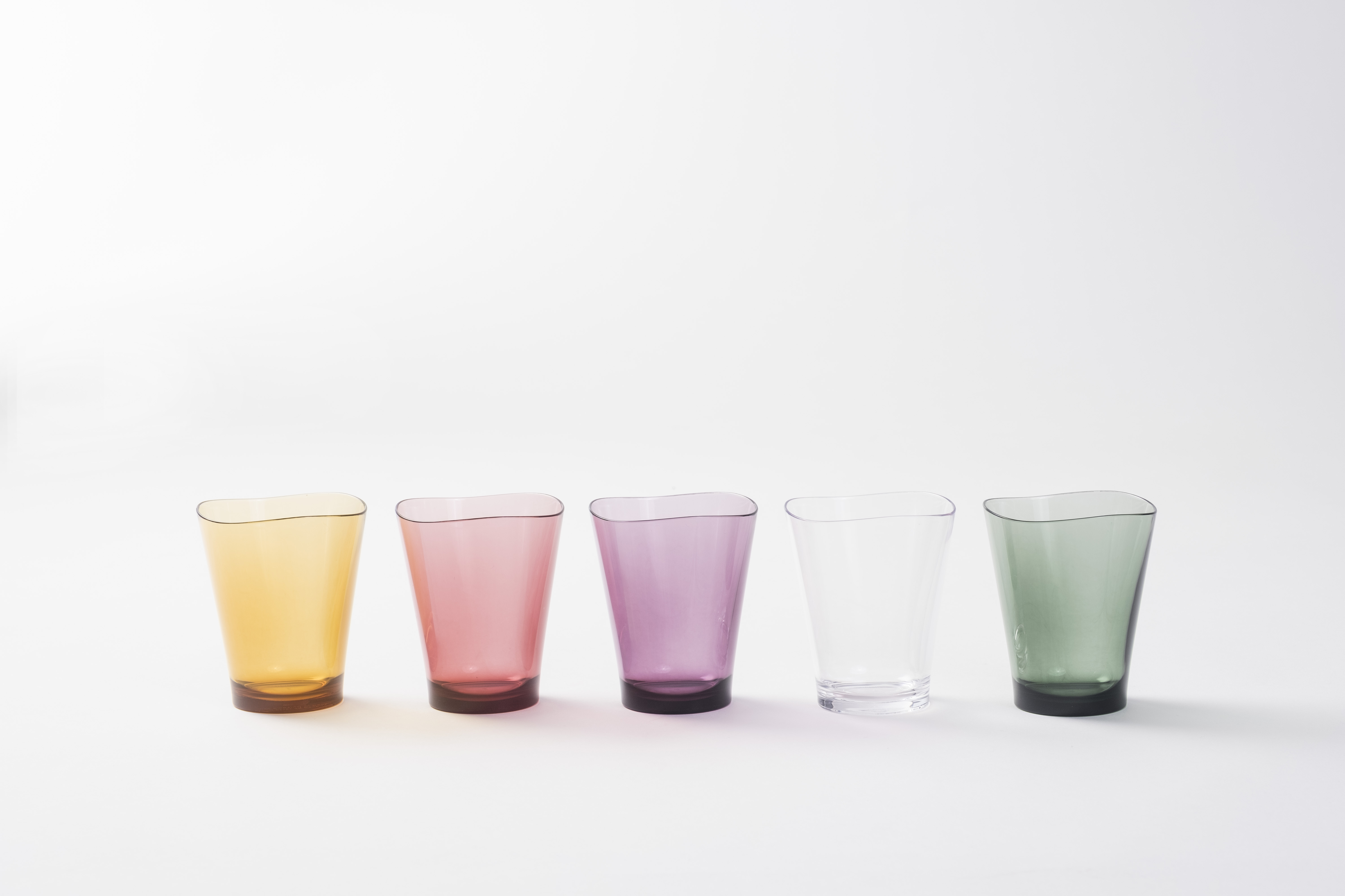 大口注文・法人のお問い合わせはこちらガラスのように透明ながらも、落としても割れない樹脂(トライタン)製のタンブラー 職人の手仕事によりゆらぎを持たせた薄い飲み口は、なめらかな口当たりを可能に。 ゆらぎ部分から空気が抜けるので、洗った後もすぐに乾きます。 デザインチーム「secca inc.」が監修した日常になじむミニマルデザイン。 100℃までの耐熱性を誇り、食洗機にも使える便利さ。 落ち着いたカラーの5色セット。 子供から大人まで、毎日、気兼ねなく使えるタンブラーです。