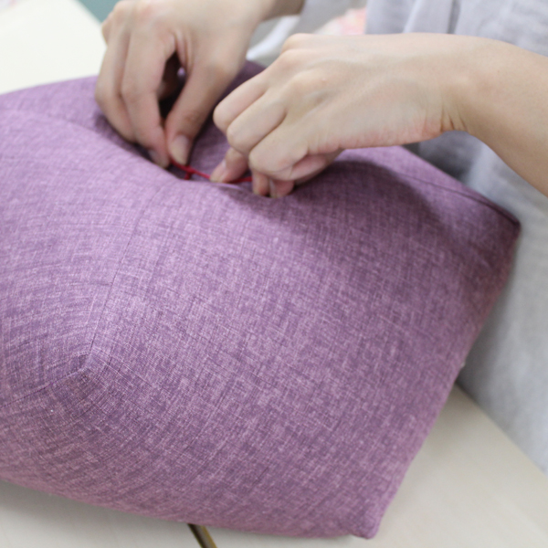 一つ一つ手作りで作り上げたおじゃみ座布団は、通常の座布団よりも厚みと安定感があり、座ると自然と背筋が伸びて、長時間楽にお座りいただけます。