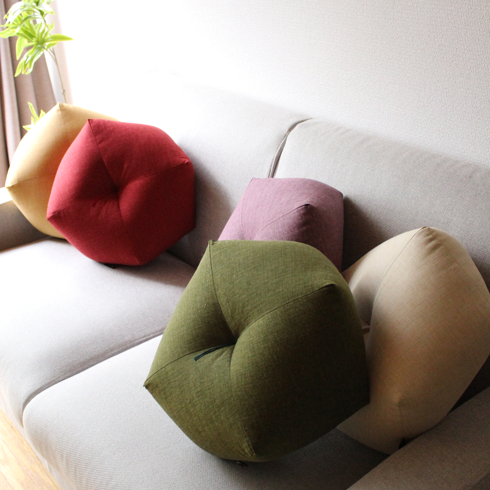 床だけでなくソファやベッドでクッション代わりにも。インテリアとしても和室にも洋室にも合う立体的で美しいフォルムです。還暦、古希、喜寿、米寿など贈りたいシーンに合わせてカラーを選択していただけます。
