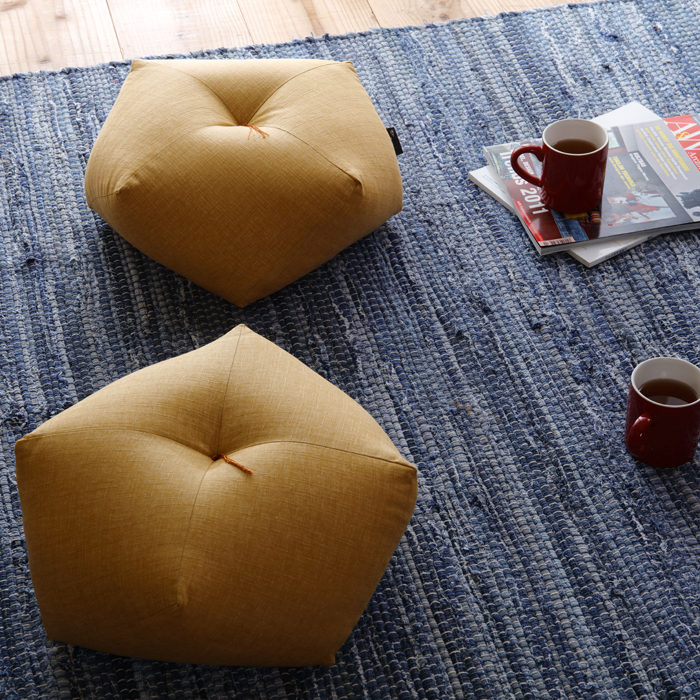 おじゃみとは関西で「お手玉」のこと。 お手玉の縫い方を元に4枚の布を使って仕立てた新しい座布団がおじゃみ座布団。 職人達が長寿にちなんだ色で仕立てます。 一つ一つ手作りで作り上げたおじゃみ座布団は、通常の座布団よりも厚みと安定感があり、座ると自然と背筋が伸びて、長時間楽にお座りいただけます。 床だけでなくソファやベッドでクッション代わりにも。 インテリアとしても和室にも洋室にも合う立体的で美しいフォルムです。