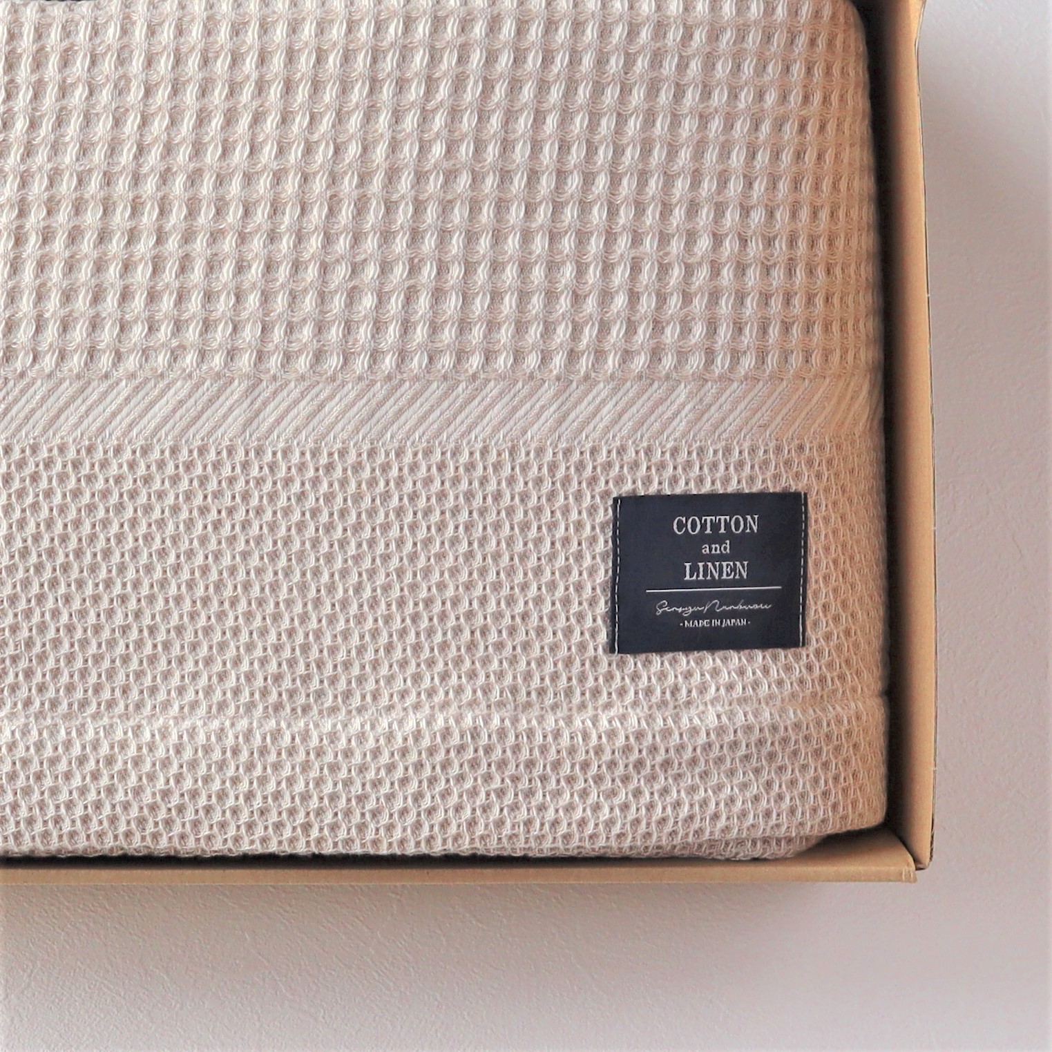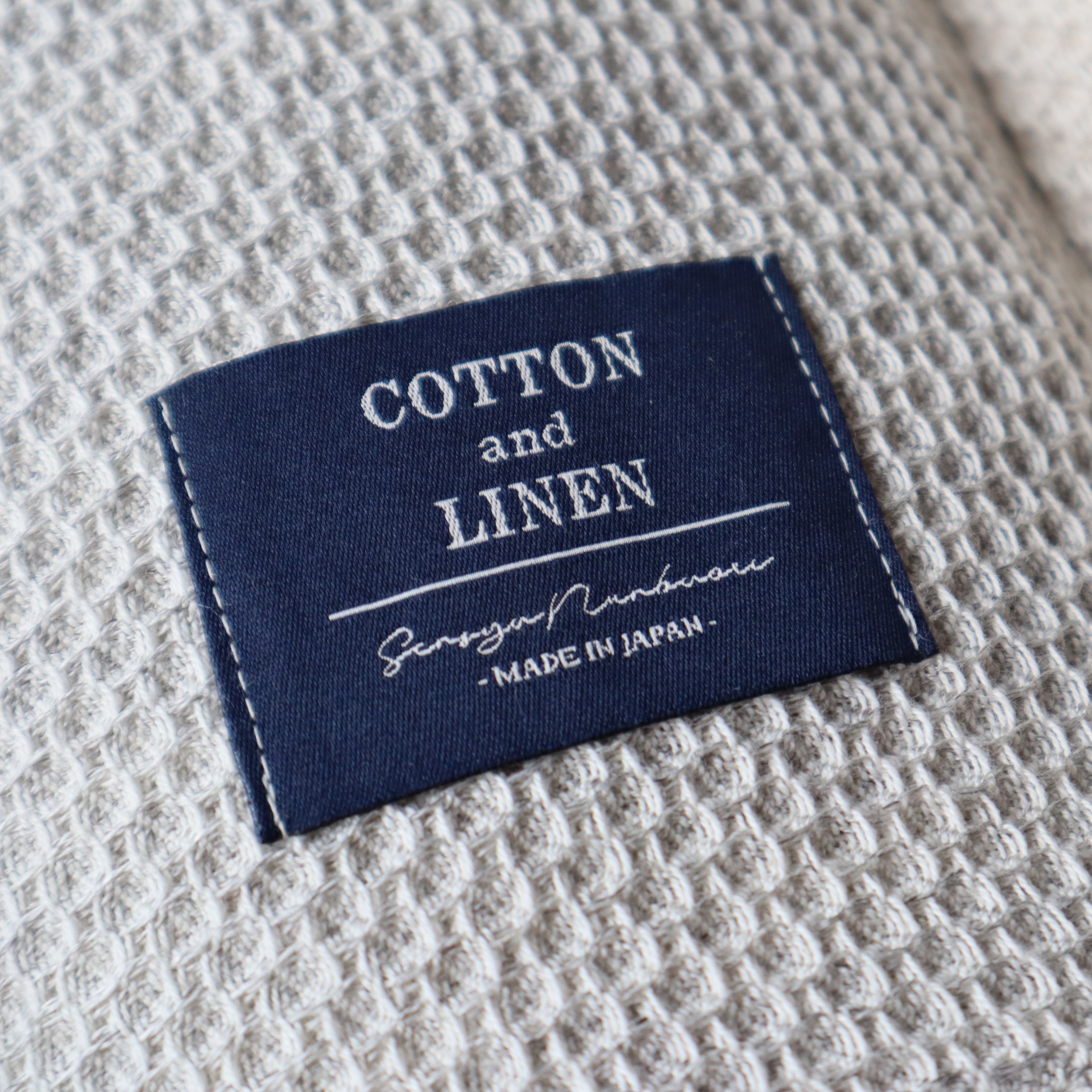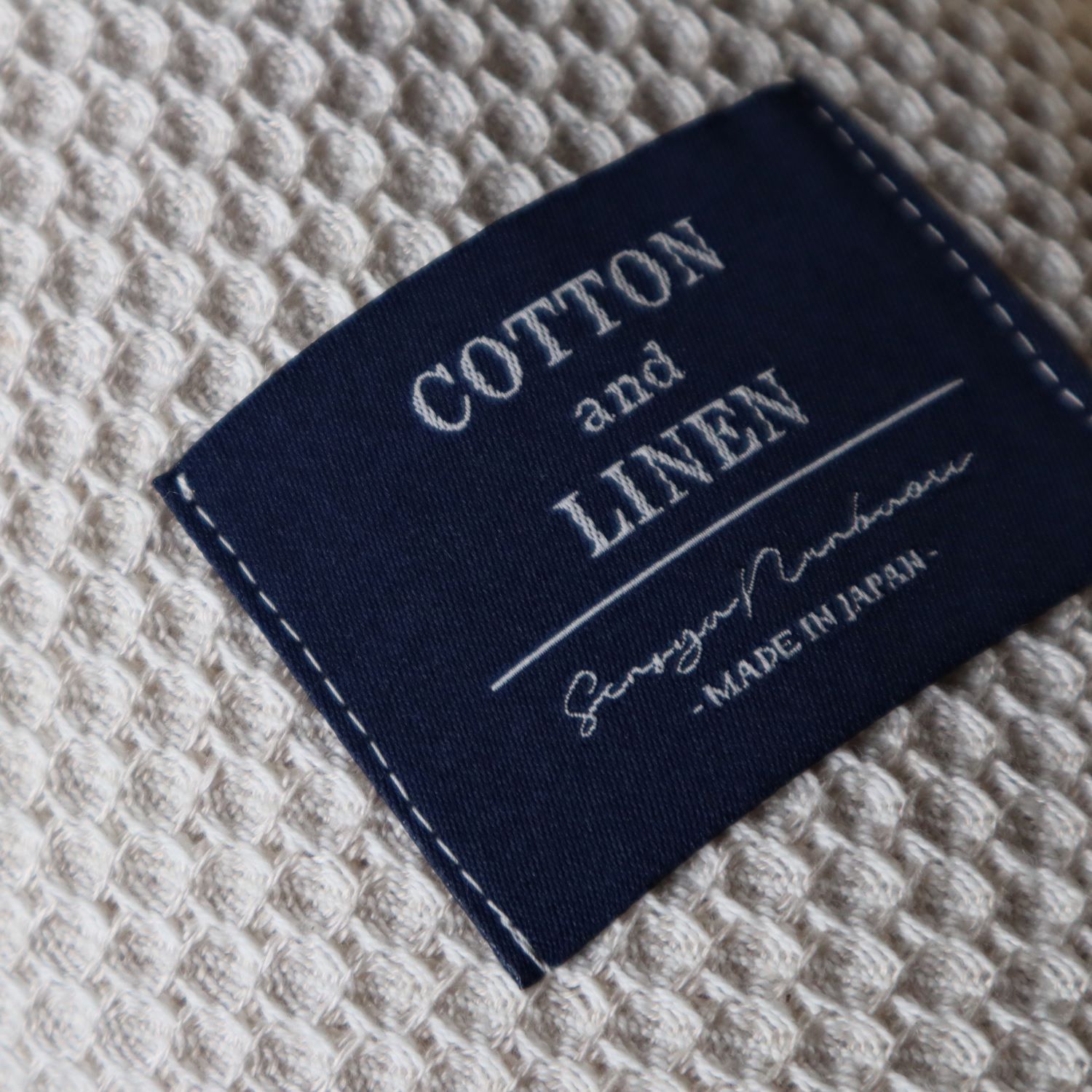 泉州南部織の代表作であるハニカム織とワッフル織を交互にデザインしたオシャレなブランケット。コットンの特徴であるふんわりと柔らかい肌触りとリネンは独特のシャリ感を楽しめる高品質なタオルです。