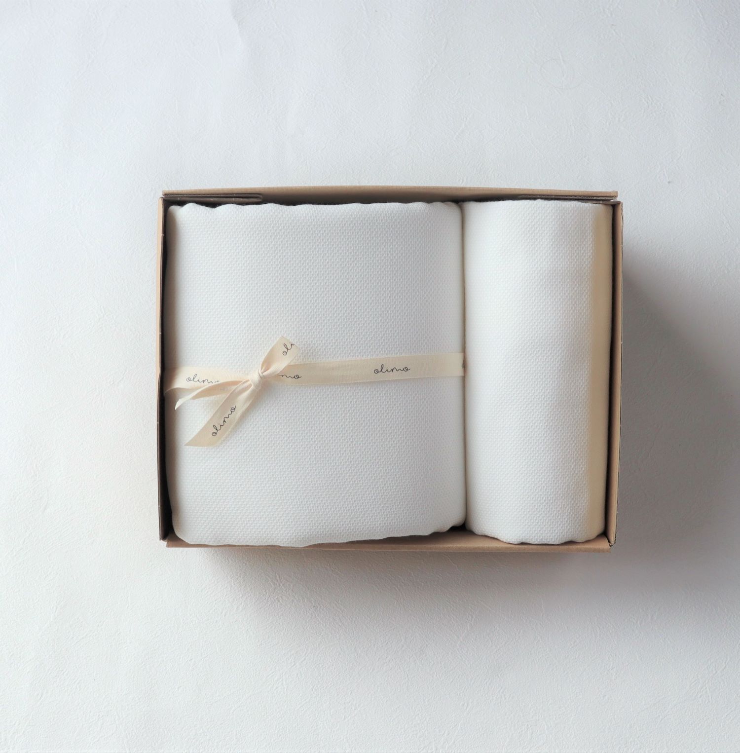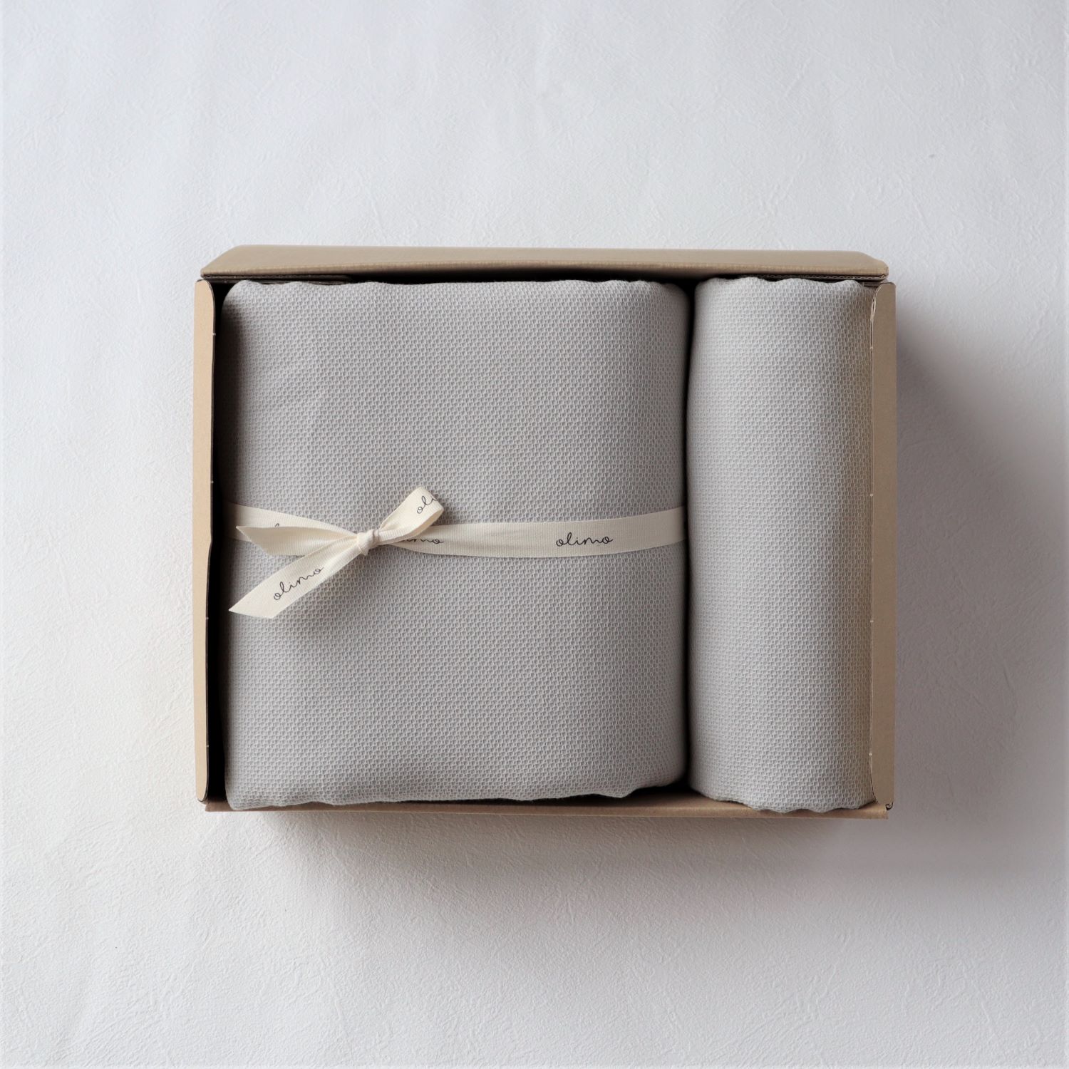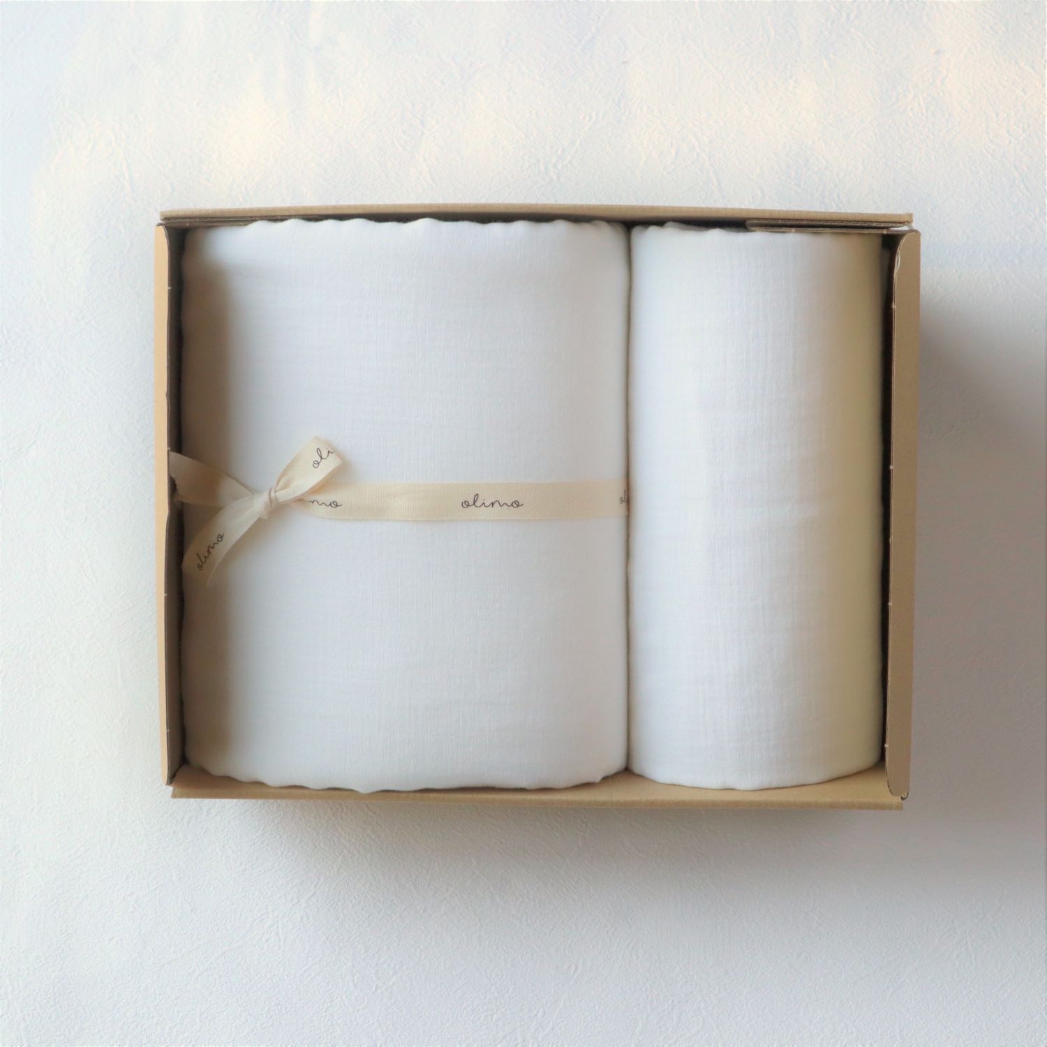 ナチュラルなボックスは、年齢問わずギフトに最適。 ロゴの箔押しが高級感があり、特別なギフトにもピッタリ。 オリジナルのコットンリボンラッピングは、ベビー・タオル・寝具の清潔で優しい印象で感じられおすすめです! 大切な人へのギフトに、ぜひどうぞ。
