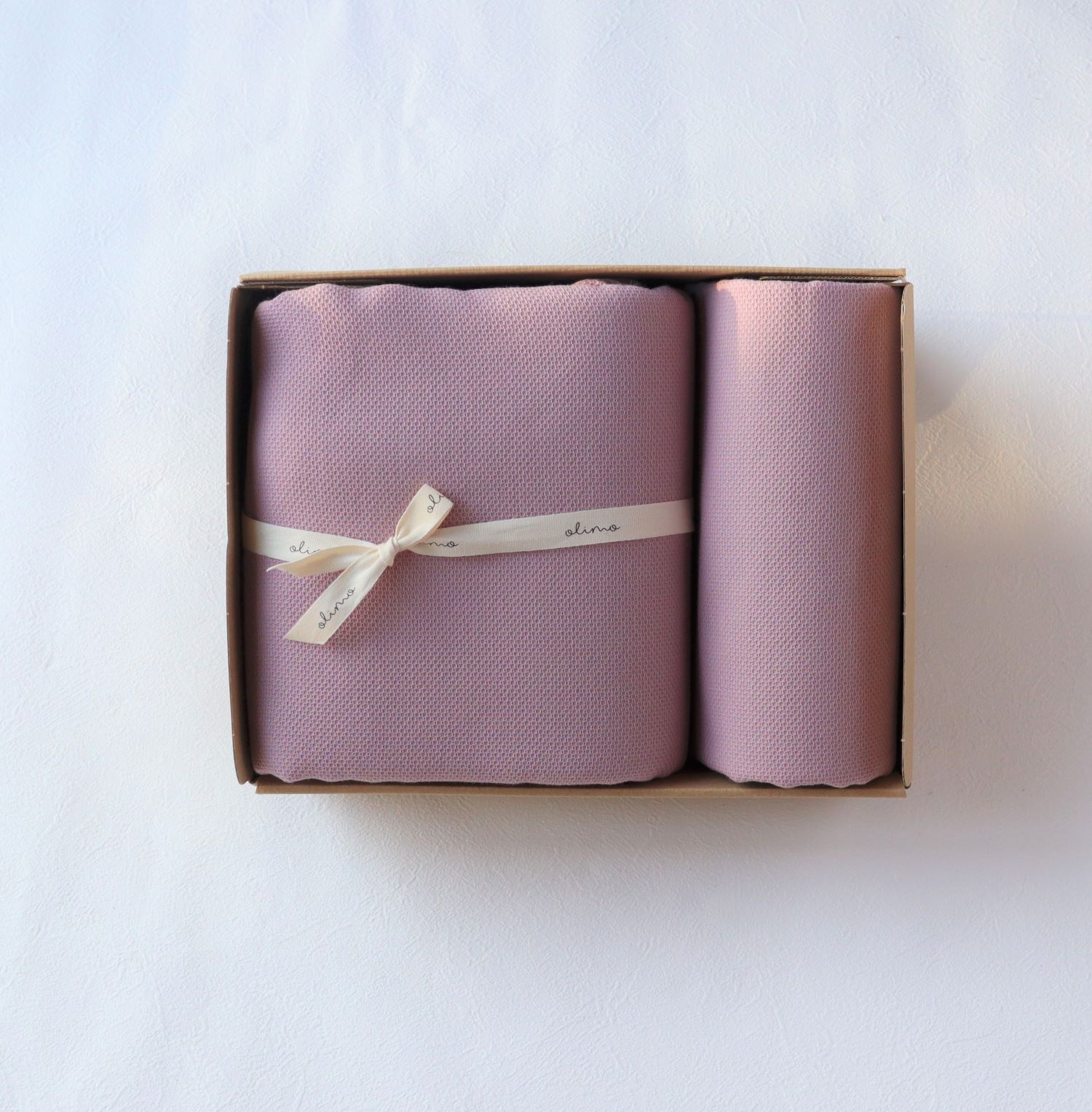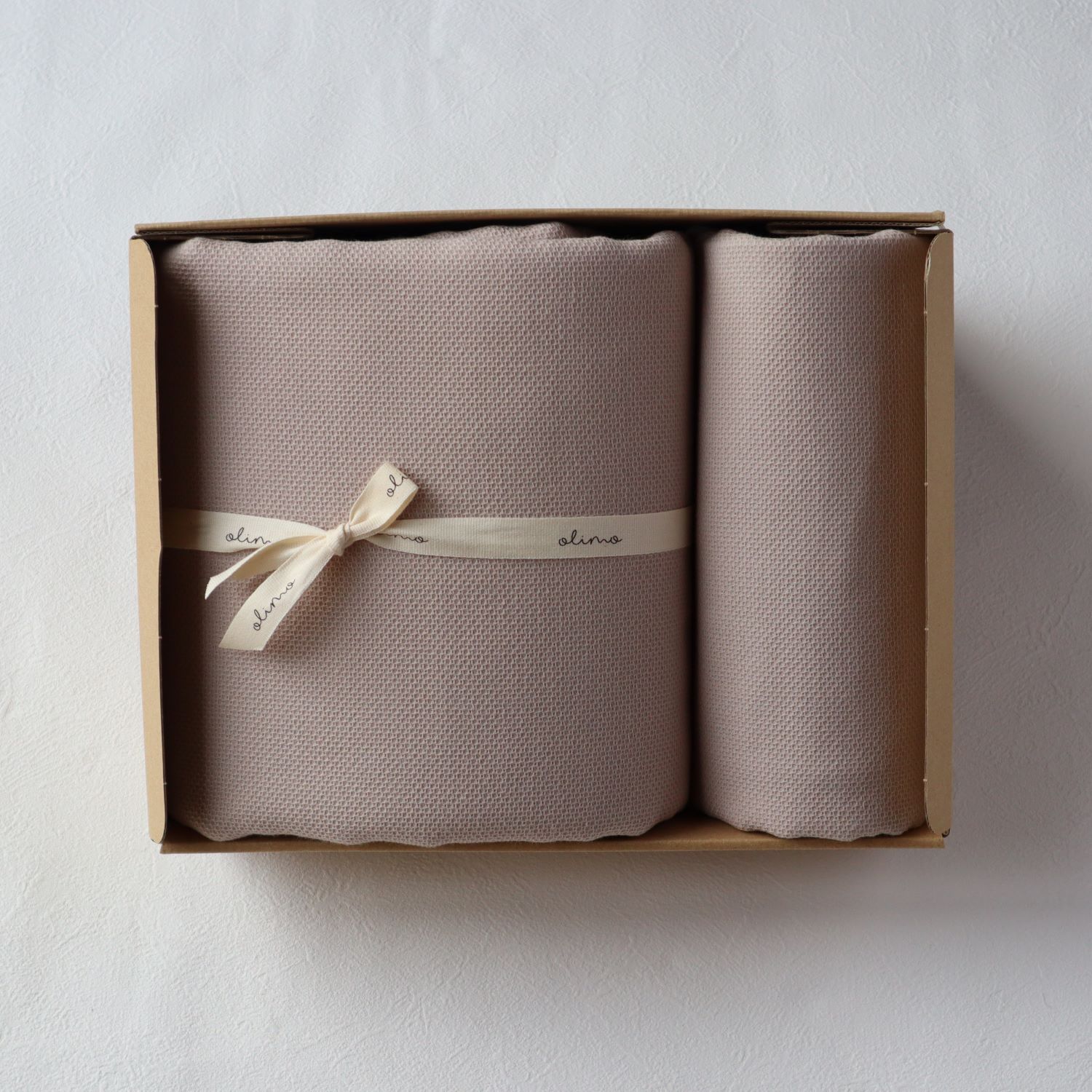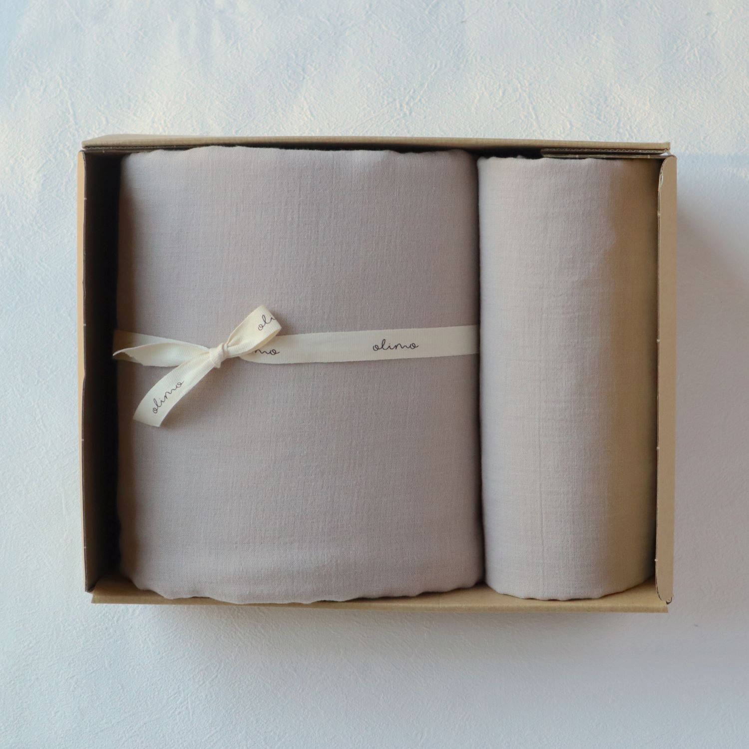 ナチュラルなボックスは、年齢問わずギフトに最適。 ロゴの箔押しが高級感があり、特別なギフトにもピッタリ。 オリジナルのコットンリボンラッピングは、ベビー・タオル・寝具の清潔で優しい印象で感じられおすすめです! 大切な人へのギフトに、ぜひどうぞ。