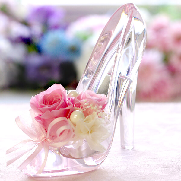 人気のハイヒールデザインにプリザードローズをアレンジ。ガラスの靴とローズという女性の夢が詰まったデザインです。手のひらサイズだからこそ、主張しすぎず、どこにでも置きやすいのが魅力です。