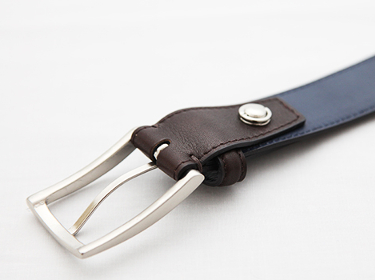 大口注文・法人のお問い合わせはこちらビジネスベルト、ドレスベルトのライン、attireシリーズのフレンチカーフモデル。 フェザー仕立て(ベルト帯の中心を盛り上げる工法)のベルトは、紳士ベルトの最もベーシックなスタイルです。 裏革には、【KNOT】のブランドカラーである、深いネイビーの牛革を使用しています。 芯材に合成芯材ではなく牛床革を使用した、100%本革製のベルトです。