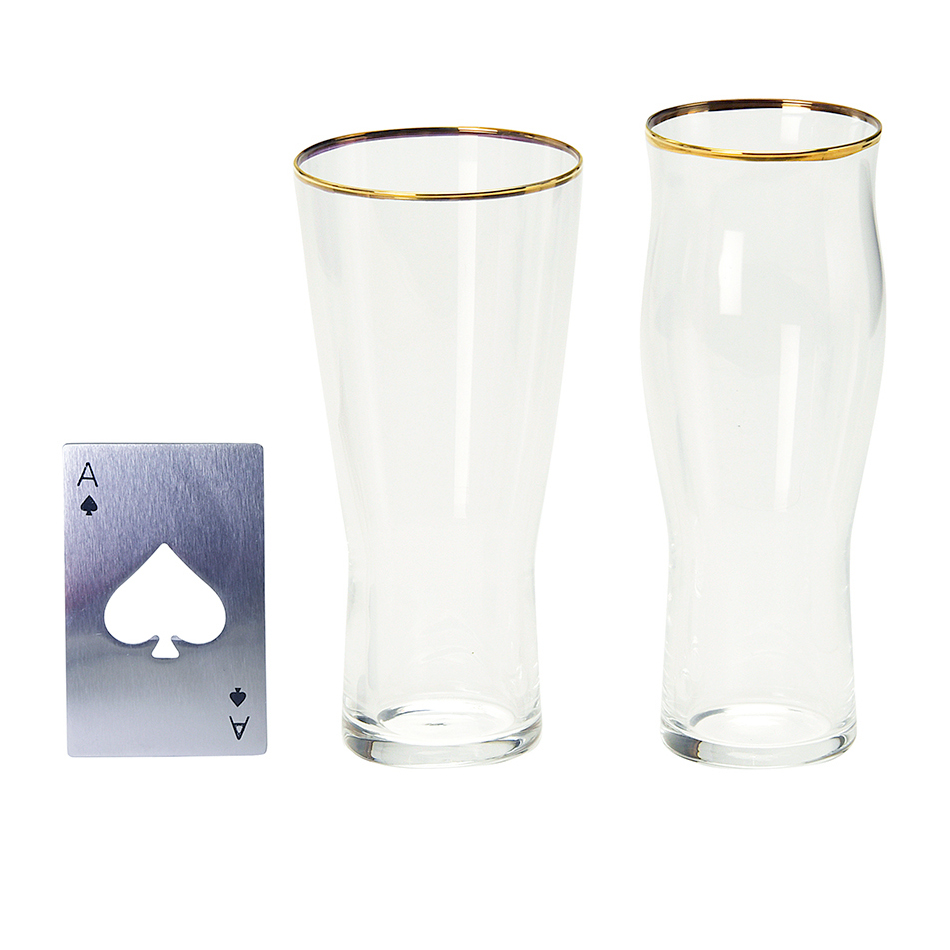 喉ごしグラスとくちあたりグラス、2種類の形状でビールのコクや香り、味わいを一層引き出します。ビールの種類、その時の気分によって飲み比べをお楽しみください。おしゃれで携帯に便利なボトルオープナー付き。瓶ビールや海外ビールの栓抜きにいざという時重宝します。