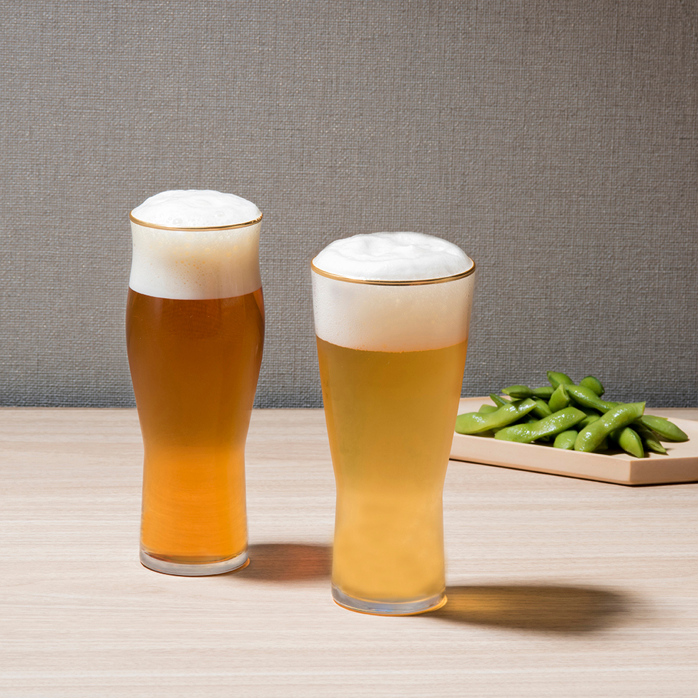 大口注文・法人のお問い合わせはこちら喉ごしグラスとくちあたりグラス、 2種類の形状でビールのコクや香、味わいを一層引き出します。 ビールの種類、その時の気分によって飲み比べをお楽しみください。