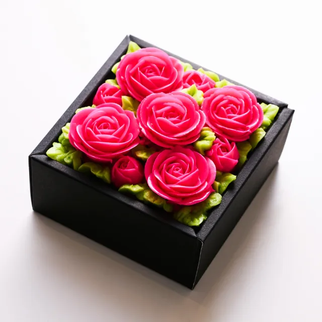 まるで生花のような透明感。開けた瞬間、花のような笑顔咲く、食べられるお花のボックスフラワーケーキのミニサイズです。