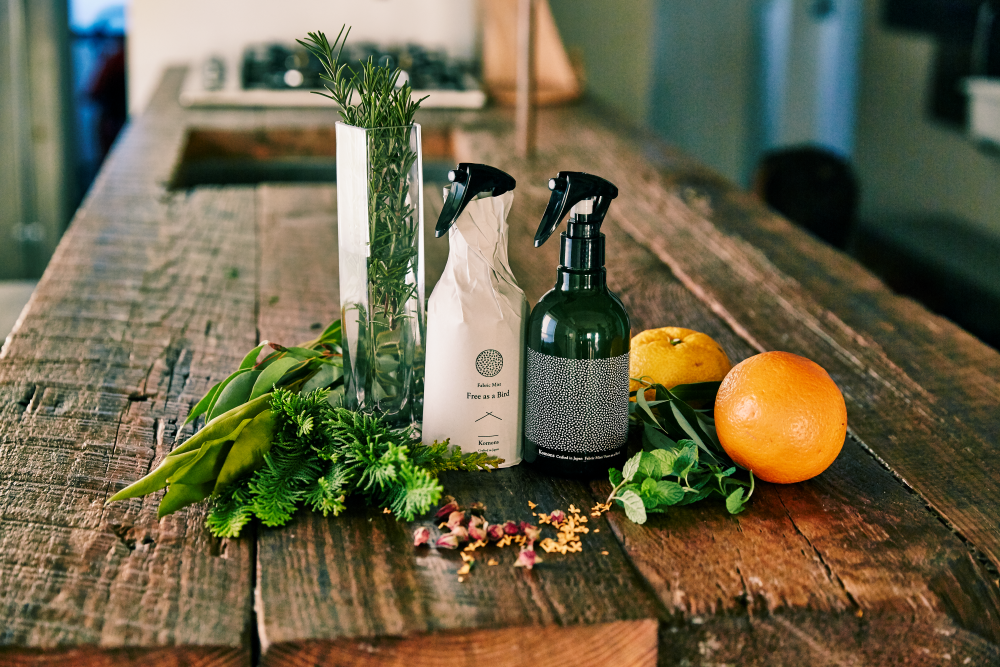 ファブリックミスト〜 Free as a Bird 〜 思わず深呼吸したくなるような、木々の香りにつつまれるファブリックミスト。 渋柿エキスが除菌・消臭効果を発揮してくれる除菌消臭剤です。 ソファやカーペット、リネンや衣服、マスクなどにお使いください。 <香り> スプレーした時はリフレッシュ、残り香はリラックス。 その複雑性と香り変化を意識してブレンドしました。 ヒバ・ヒノキ・ホーリーフといった木々の香りがしっかりと全体を下支えします。